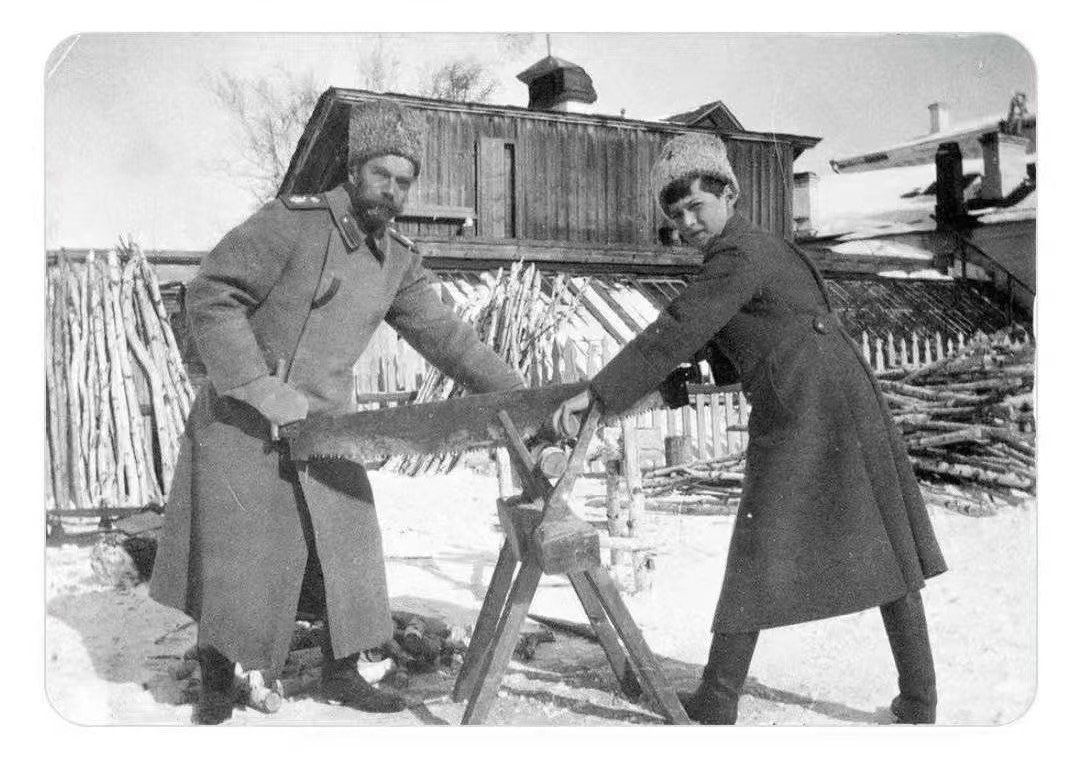 1917年,失去权力的末代沙皇和他的儿子在一起拉大锯