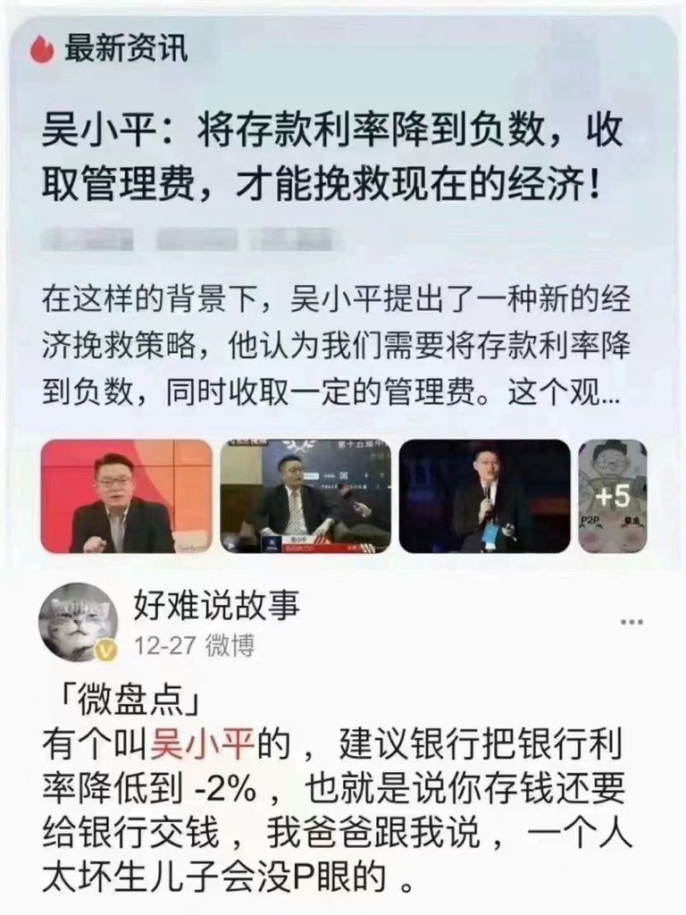 大陆砖家吴小平建议银行将存款利率降到-2%,同时收取管理费!这厮不担心银行瞬间被挤兑倒闭麽? https://t.co/R58wqJj3WU