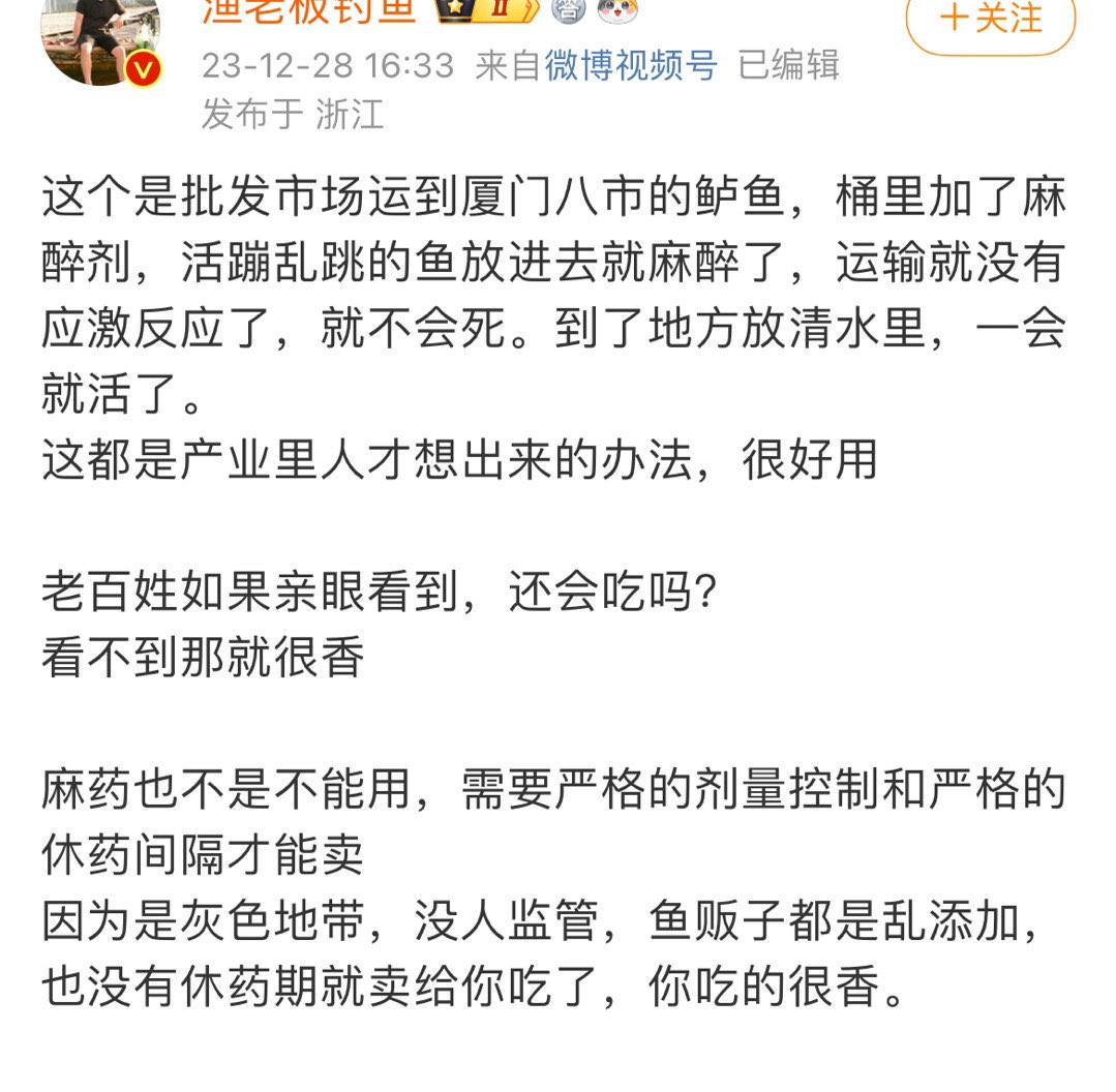 没有休药期,没有监管的灰色地带,鱼贩子为了保鲜,给活鱼吃了麻醉剂。 https://t.co/Om4hqeVQLJ