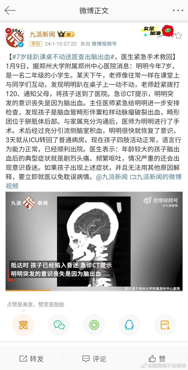 7岁小学生趴课桌一动不动,送医诊断脑出血……。以前你听说过7岁的孩子患脑溢血吗? https://t.co/RgvjaIGIMa