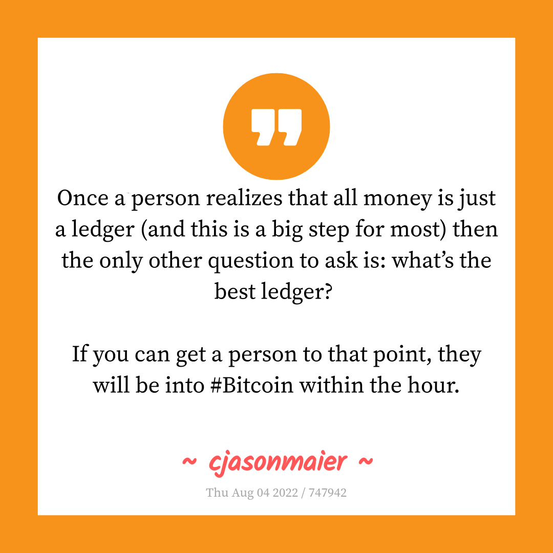 Once a person realizes that all money is just a ledger (and this is a big step for most) then the only other question to ask is: what’s the best ledger?