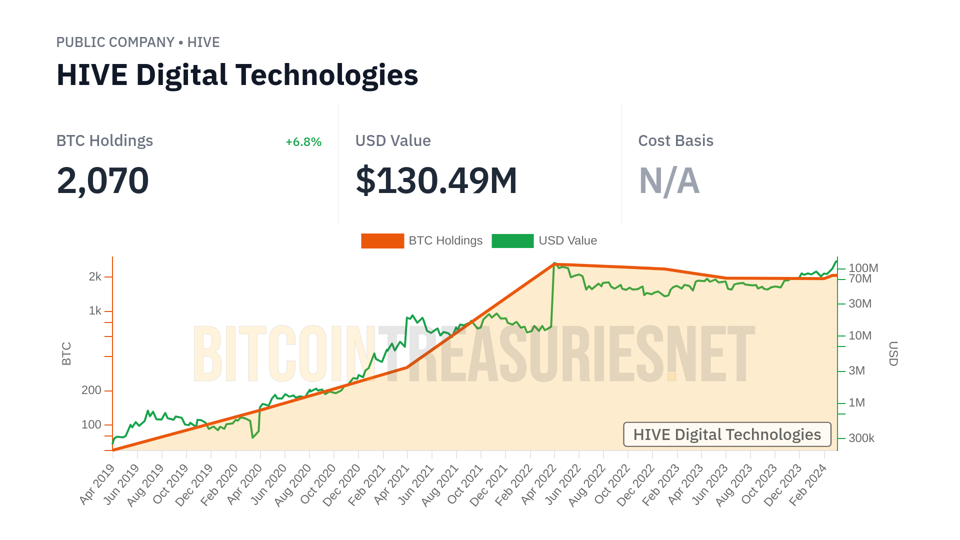 Summary of BitcoinTreasuries.NET data as of March 1, 2024: