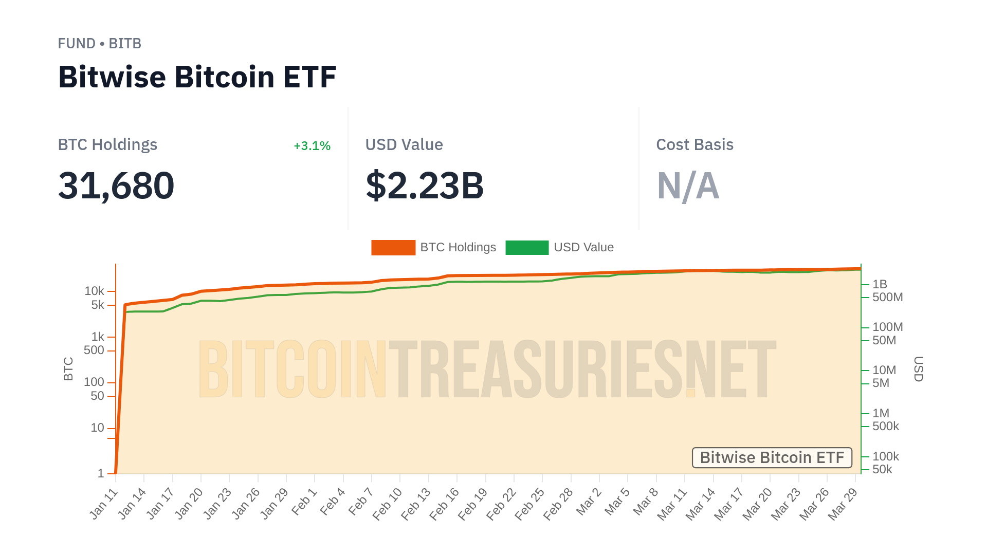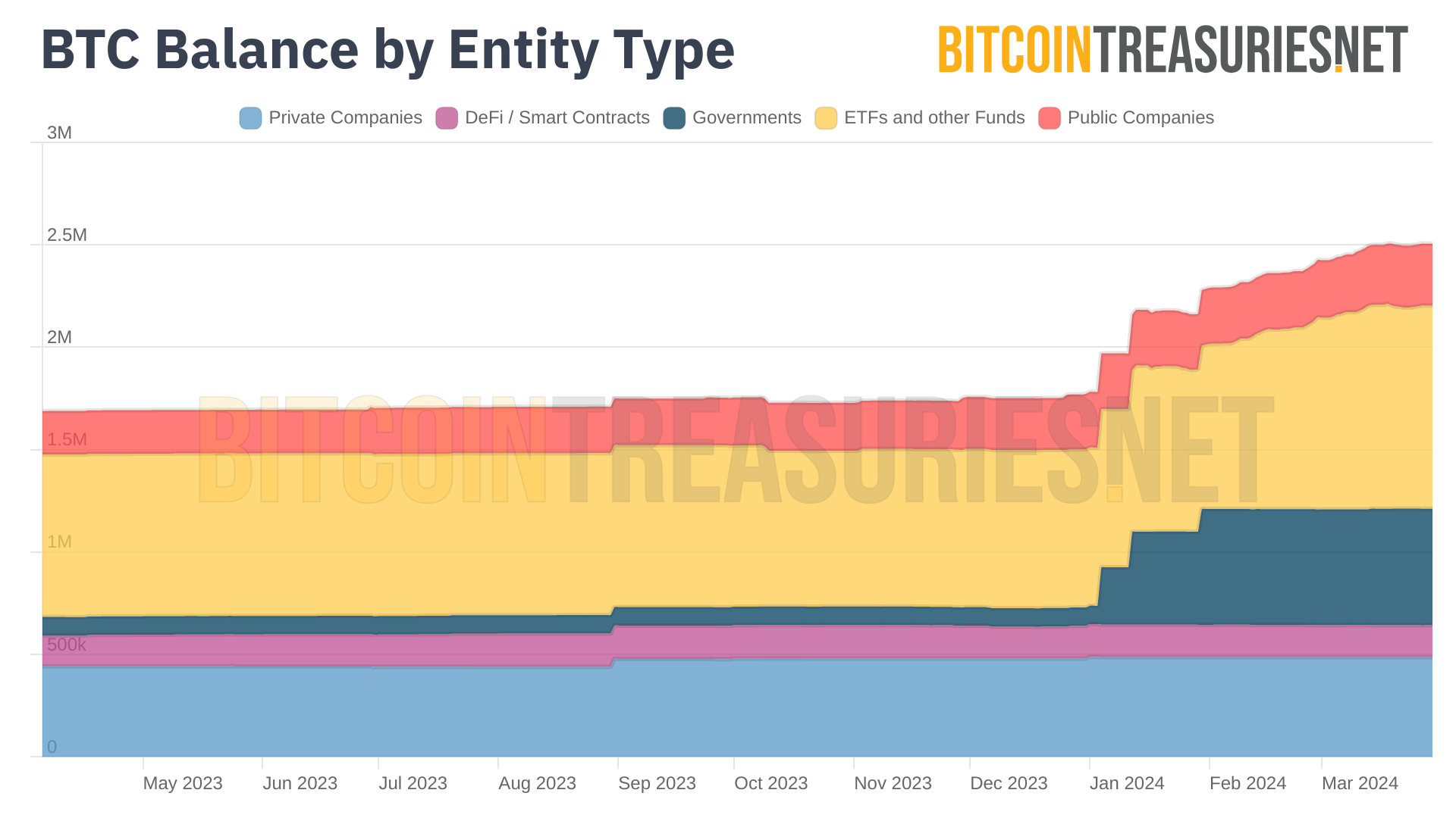 Summary of BitcoinTreasuries.NET data as of April 1, 2024: