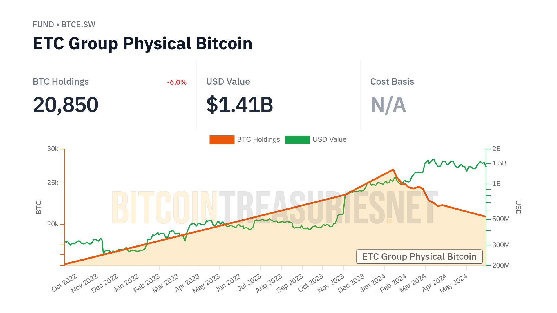 Summary of BitcoinTreasuries.NET data as of May 27, 2024: