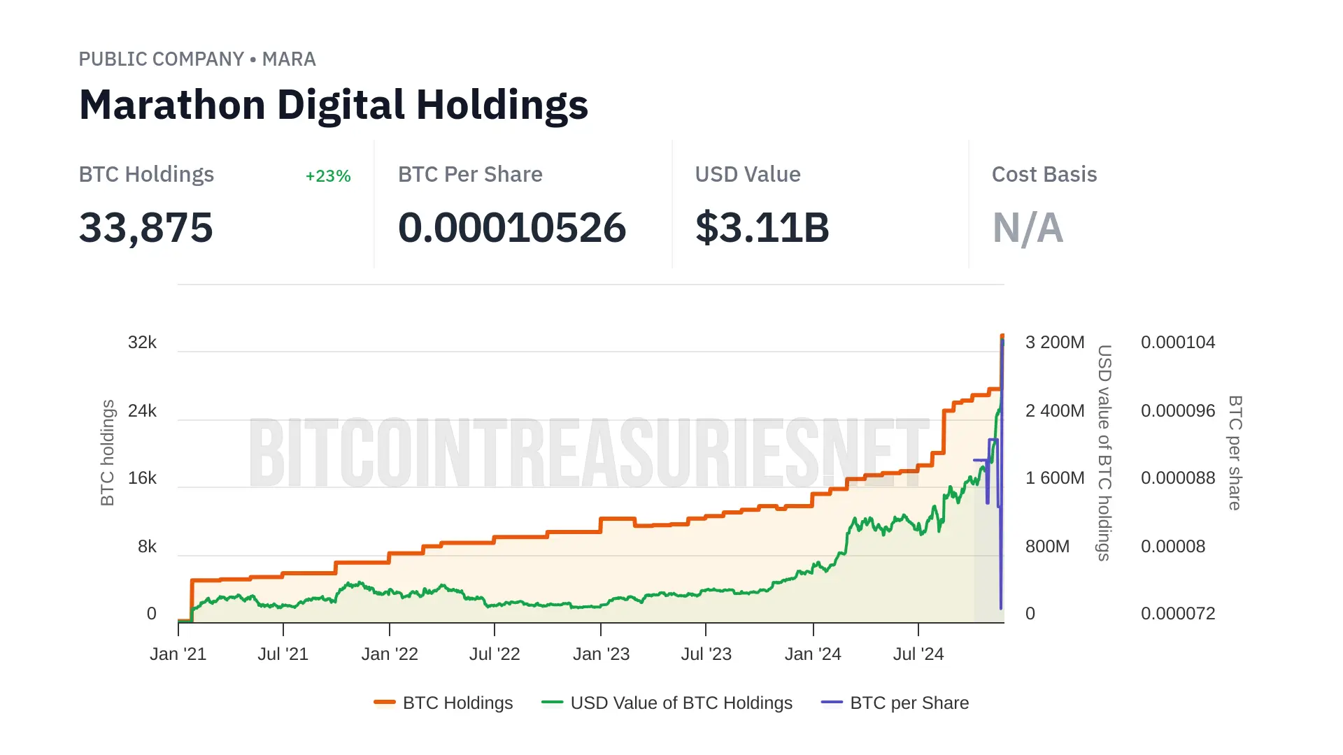 For more details, check out https://bitcointreasuries.net/entities/marathon !