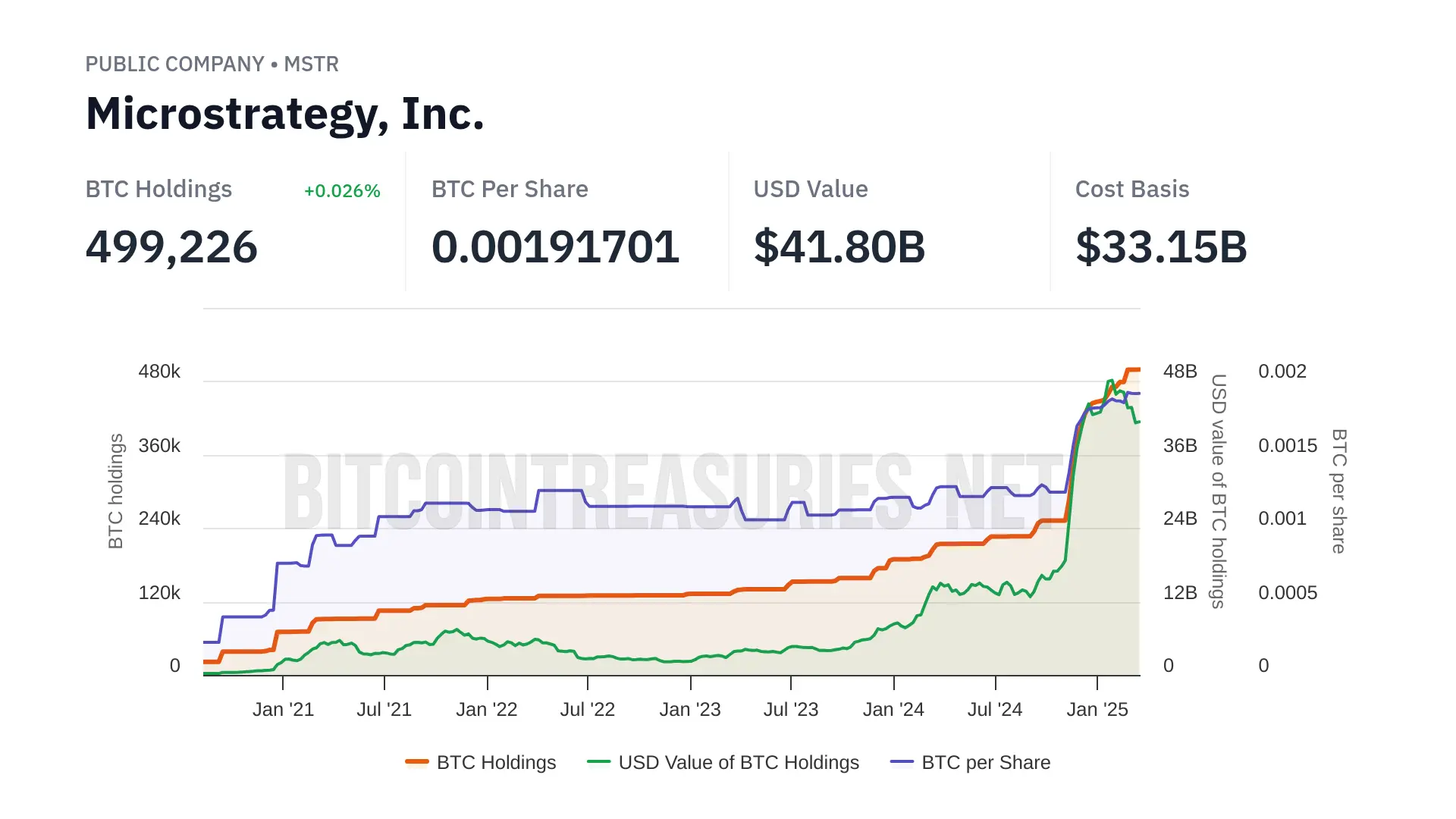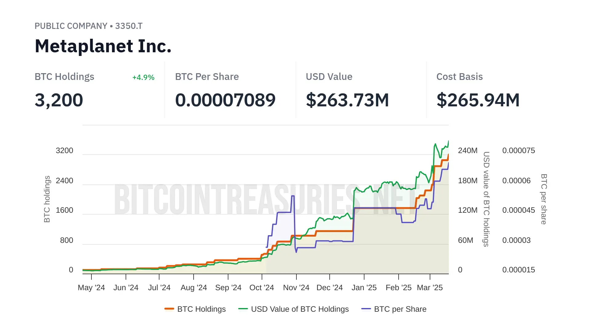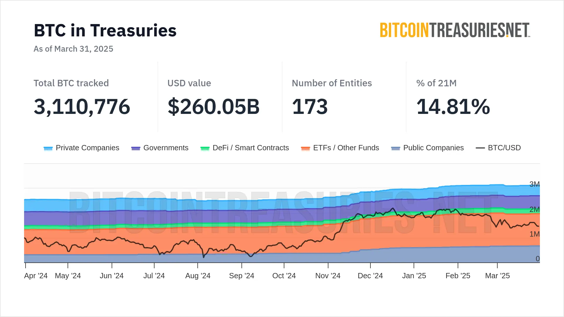 Summary of BitcoinTreasuries.NET data as of March 31, 2025: