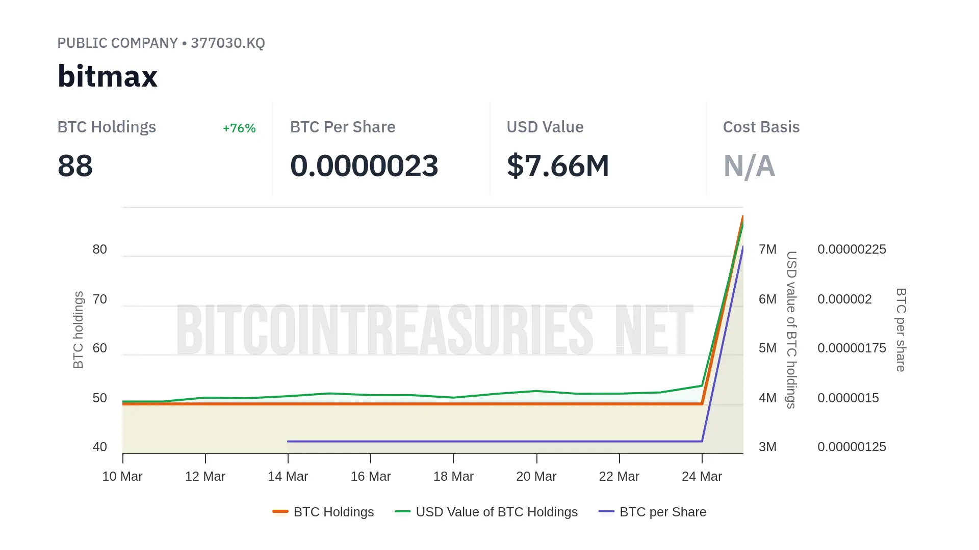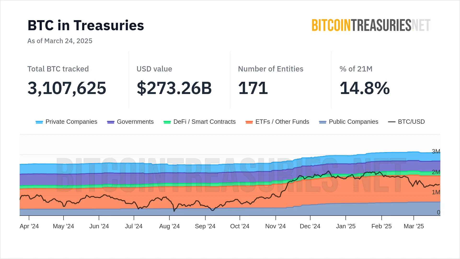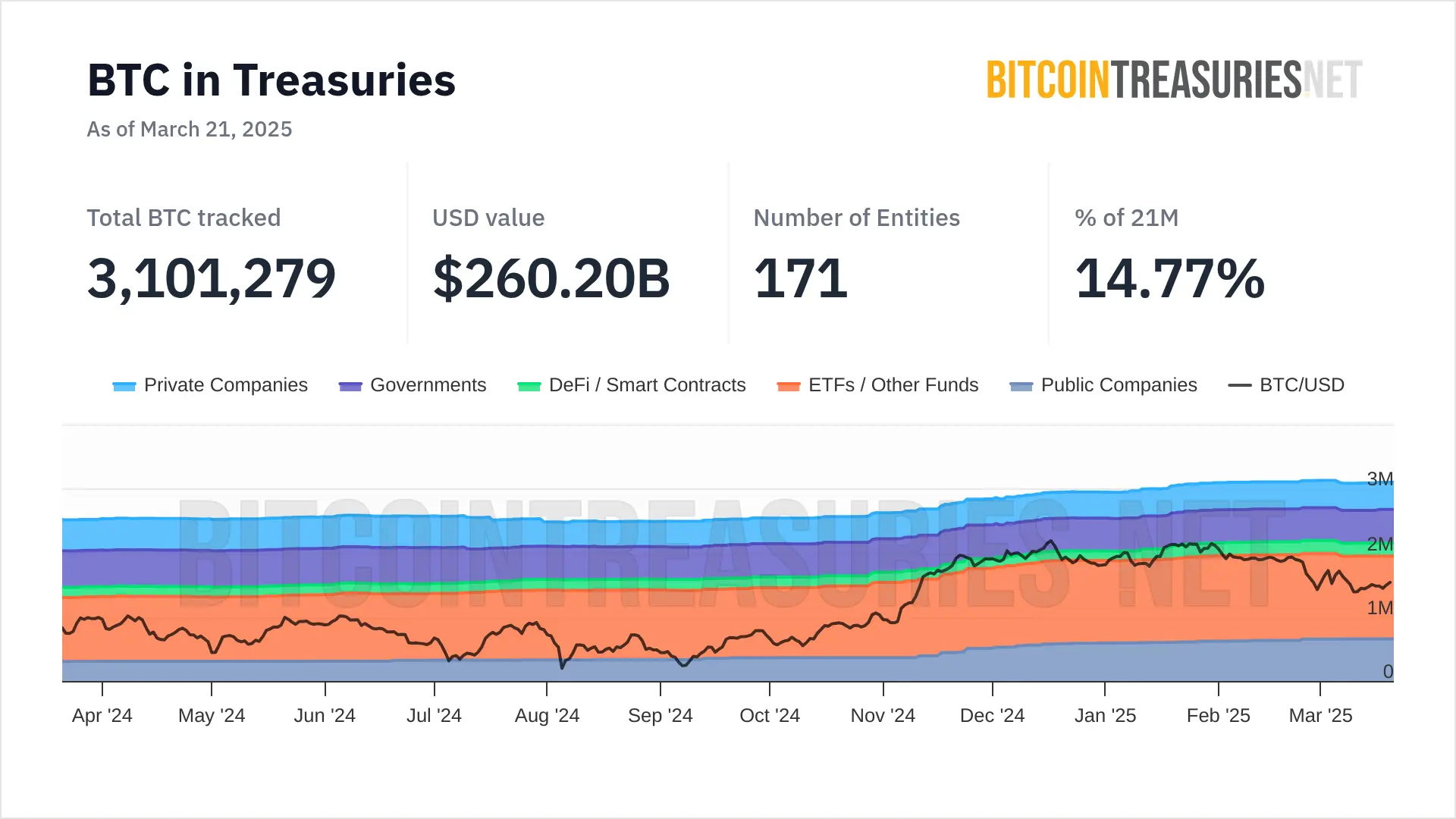 Summary of BitcoinTreasuries.NET data as of March 24, 2025:
