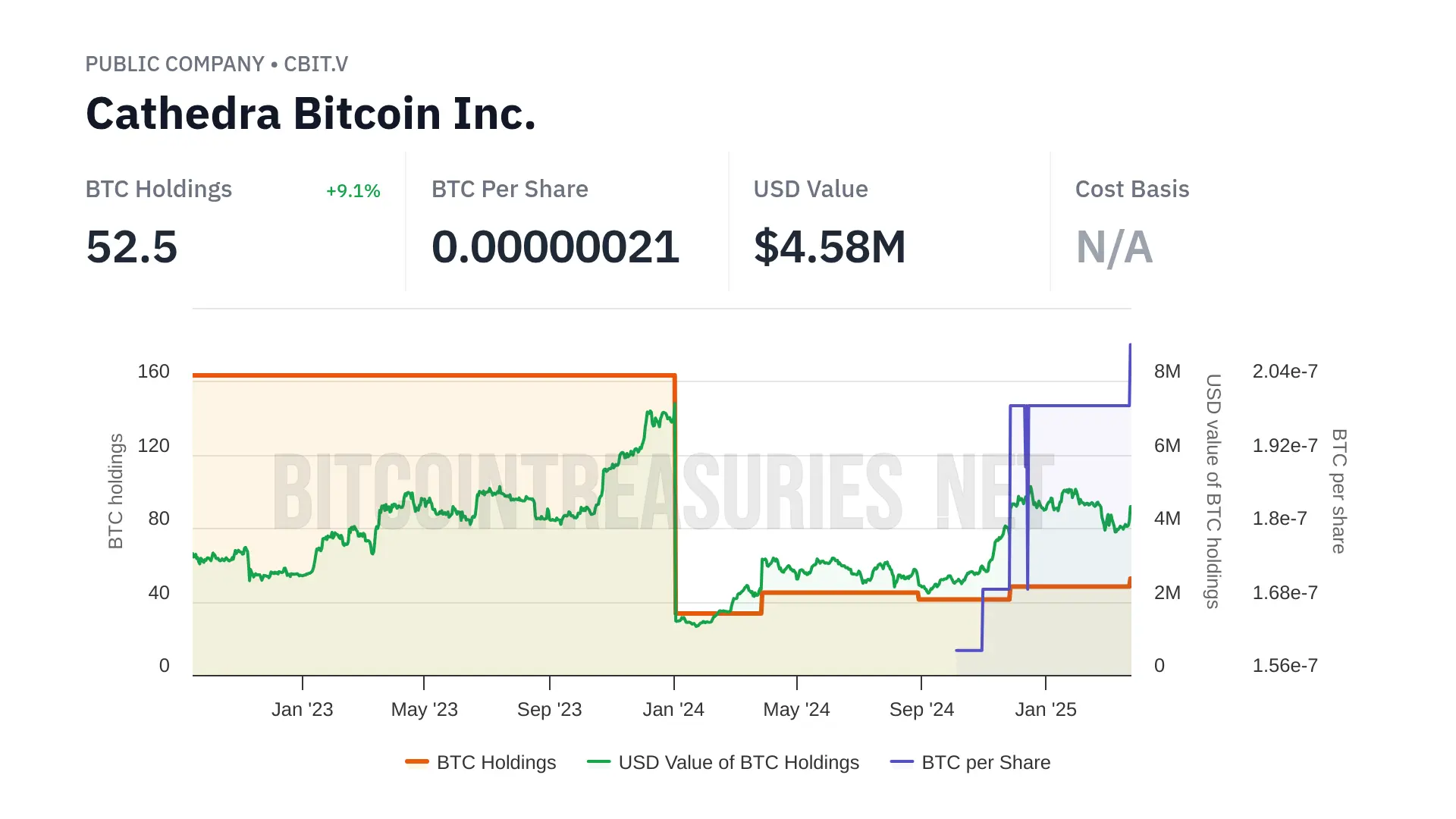New data added for Cathedra Bitcoin Inc. β $CBIT.V!