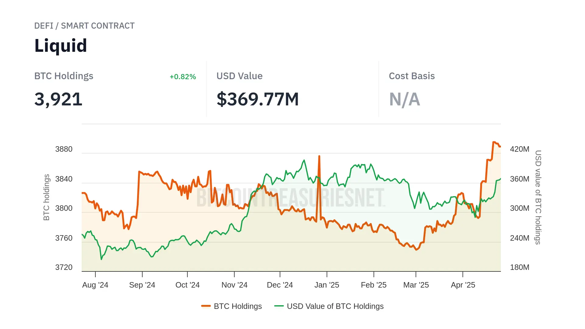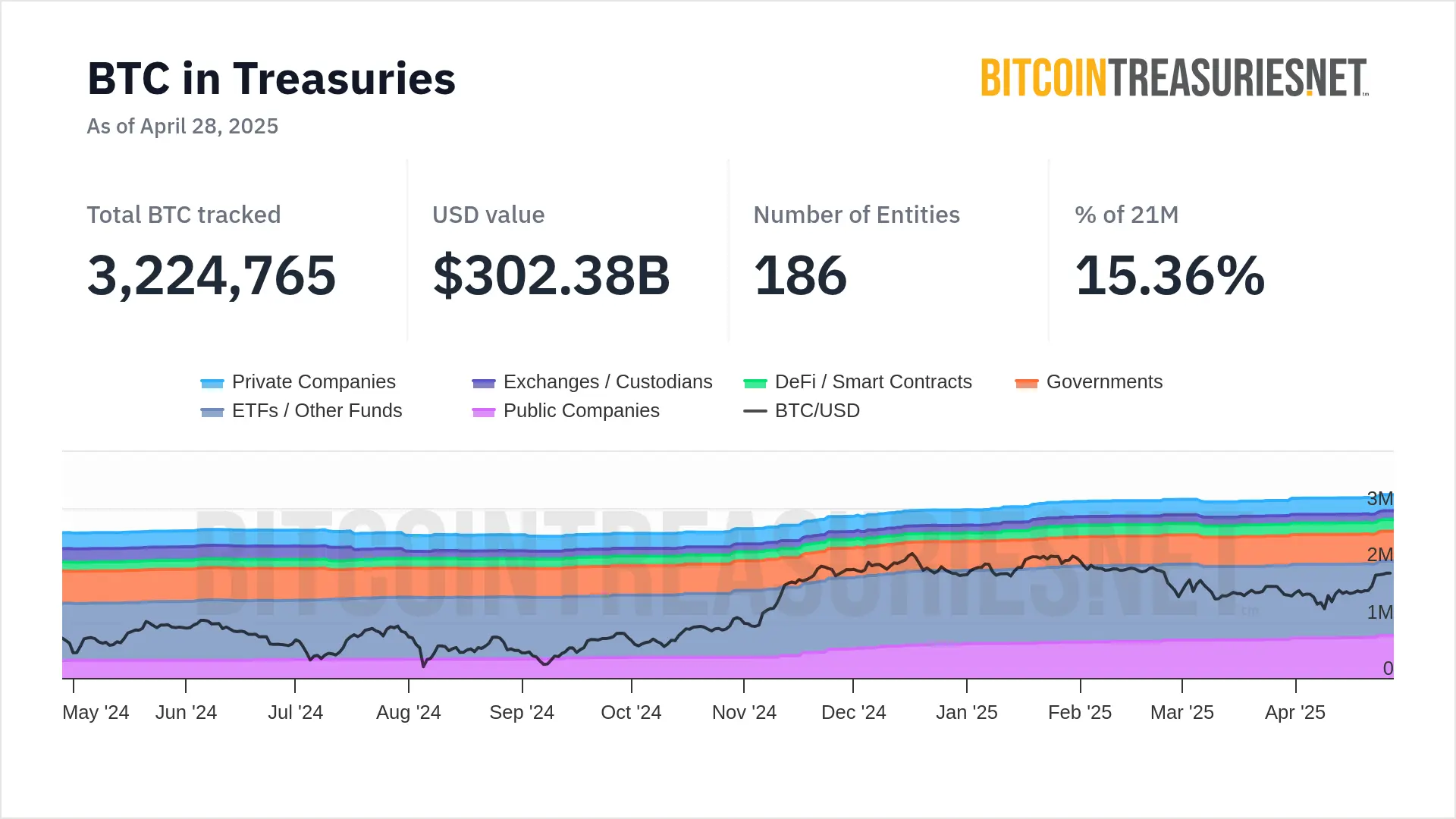 Summary of BitcoinTreasuries.NET data as of April 28, 2025: