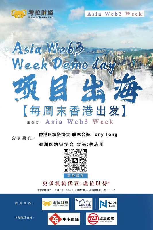 Digital China grand Strategy. The tide rises in Hong Kong and Hong Kong embraces Web3. Recently, we are preparing web3 Asia week related activities, including study tour in Hong Kong and offline Demoday. The co-organizers are Kaola Finance, Hong Kong Blockchain Association and NODE LAB. The activities mainly focus on local web3 policy services in Hong Kong, capital docking and project sailing, etc. Please contact me as soon as possible if you need. Together web3😀😀