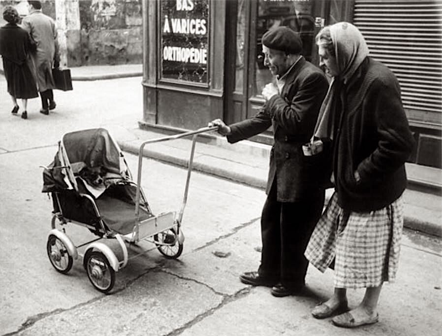 Dog in stroller, Paris, ca. 1955 - by André Martin (1928 - 1999), French
