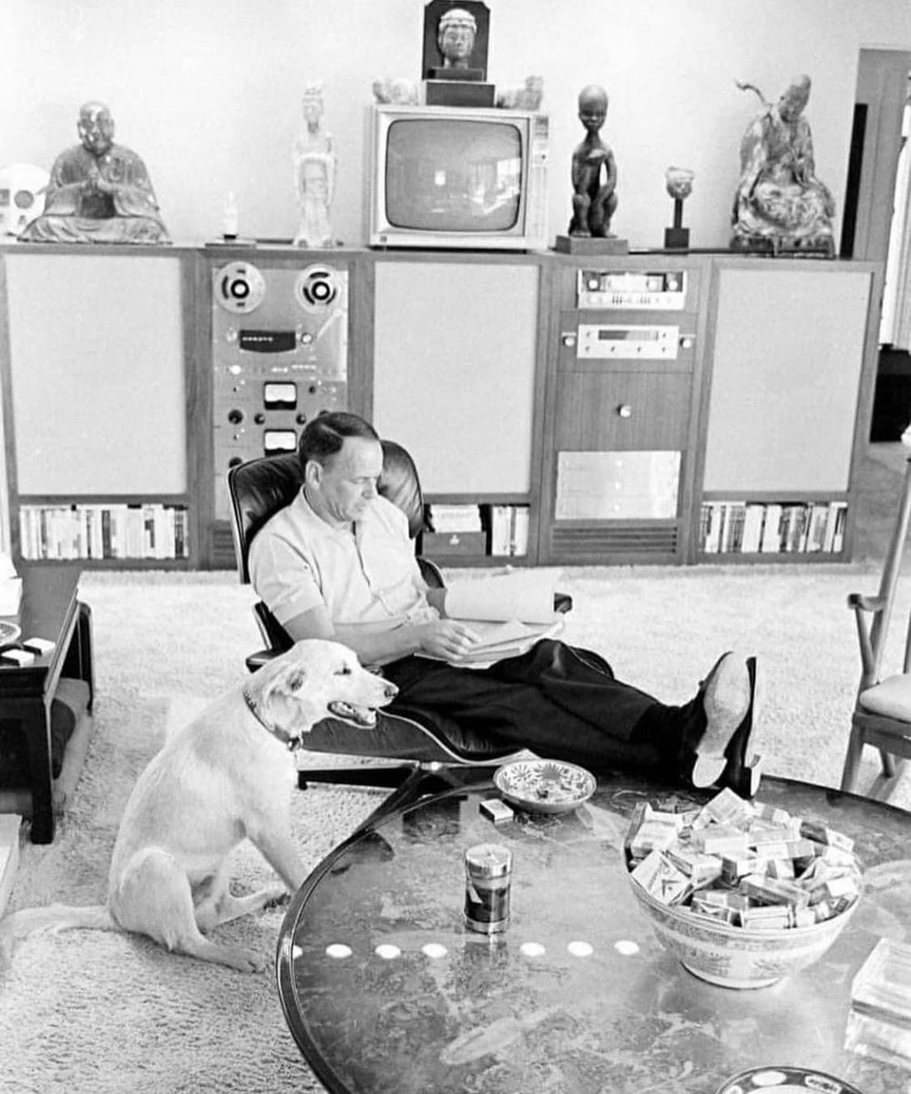 Frank Sinatra relaxing at home with his dog Ringo in Palm Springs, 1964 https://t.co/rQwArl3xDO