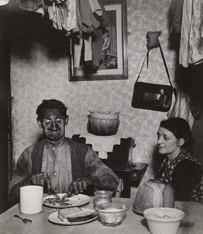 A miner at his evening meal, 1937 https://t.co/KwVxNzz7fd
