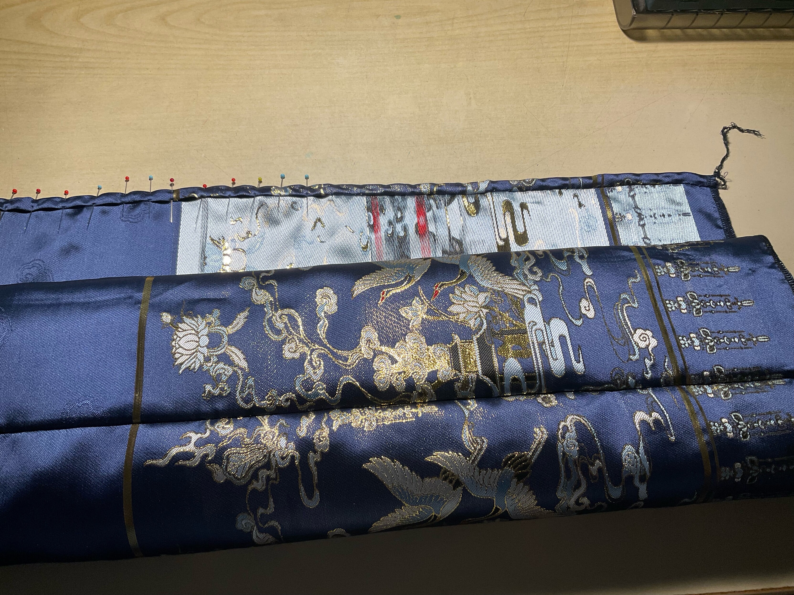 The Ma Mian skirt is slowly moving forward 🧵🪡 Have measured both panels so they are now 180 cm wide with the side seams done. Now I have folded the side seams over 1/2 cm, pressed it, then folded it 1 cm 🌸 Now I handsew... And I do that for all 4 side seams and bottom seams. It will take a while but it will also make the seams invisible. Plus, I quite like handsewing ...
