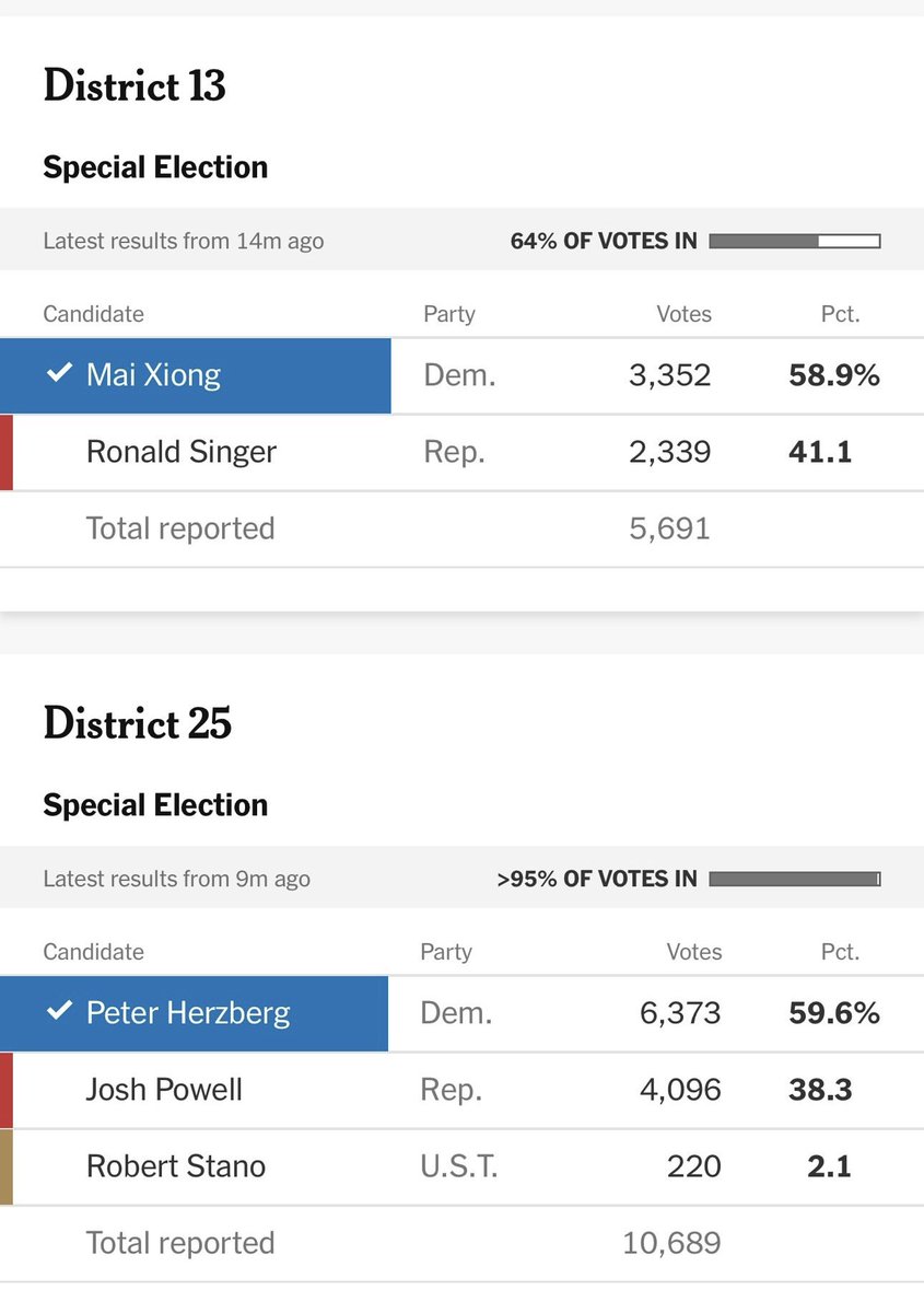密歇根民主党赢了两个州众议员的特殊选举,重新拥有州众议院多数(原来的两个州众议员辞职去当市长)。其中Mai Xiong是在泰国难民营出生的苗族,原来是个职业翻译。 https://t.co/XzFIO2w1Rx