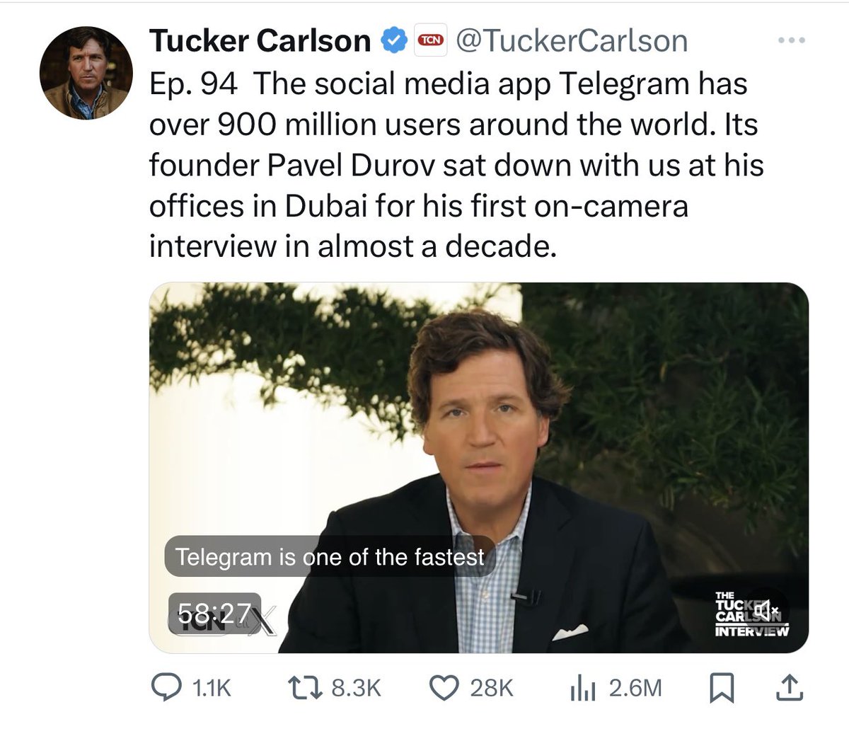 我并没有关注塔克.卡尔森,但是他的节目还是出现在我的推特时间线上,而且没有注明是广告。其浏览量就是这么强行虚高的。现在推特的广告全是川普、川普家、共和党候选人的募捐广告,看来推特在靠共和党输血维持。 https://t.co/j88OC6knyZ