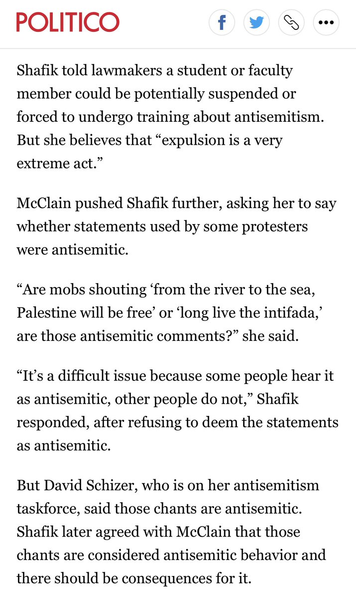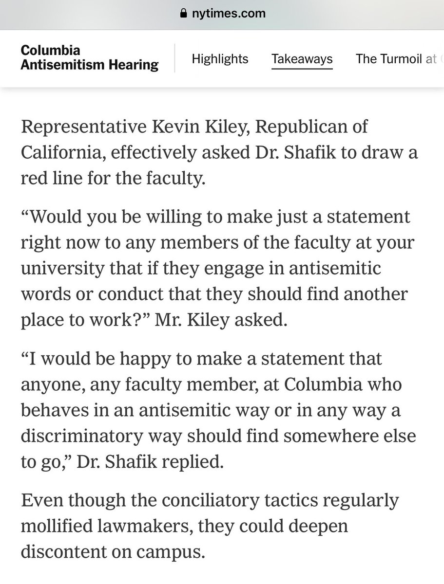 今天的众议院听证会上,哥伦比亚大学校长向共和党众议员保证,如果哥伦比亚大学教授有反犹主义言行就会被开除。《巴勒斯坦百年战争》作者Khalidi就是哥伦比亚大学讲席教授,以色列支持者一直指控该书是反犹主义,他要被开除吗?据称接下来共和党议员要传讯伯克利校长。看看他会怎么捍卫师生的言论自由 https://t.co/A8g8adHAna