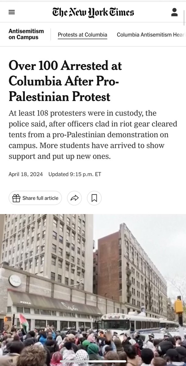 哥伦比亚大学校长从众议院听证回校,立即执行共和党议员指示镇压校园“反犹主义活动”,找来警察抓走一百多名支持巴勒斯坦的抗议学生。另一批学生很快补上等着被抓。东有哥伦比亚,西有伯克利,两个学校都以抗议文化为傲,不过私立大学怕得罪政府和捐款人,胜负已分。 https://t.co/ao2jOlF3YZ