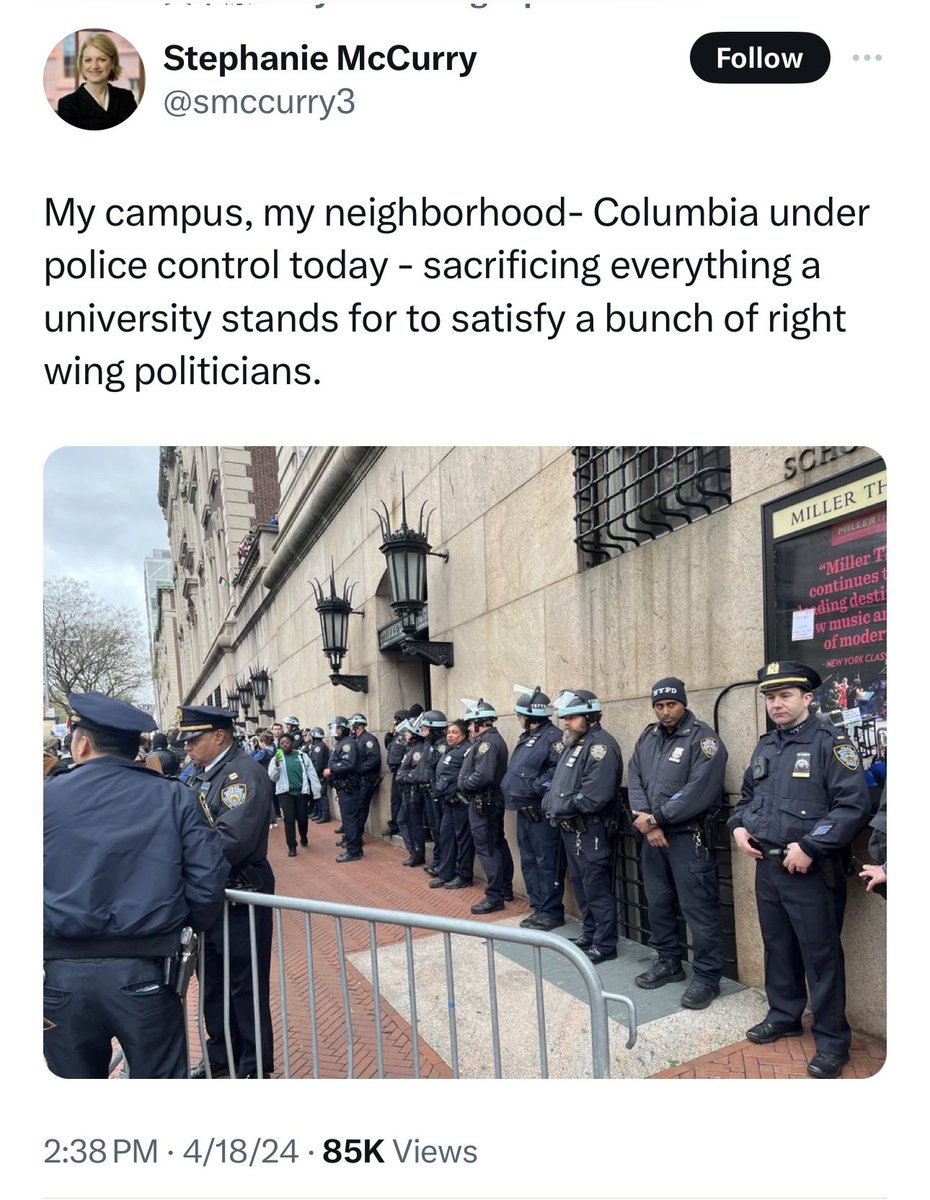 哥伦比亚大学的学生们继续占领“广场”抗议,警察抓得完吗?难道要出动坦克清场? https://t.co/TxkDpLpbIT https://video.twimg.com/amplify_video/1781169905095806976/vid/avc1/720x1282/Cv7eDJ9e4Z1sskm0.mp4?tag=14