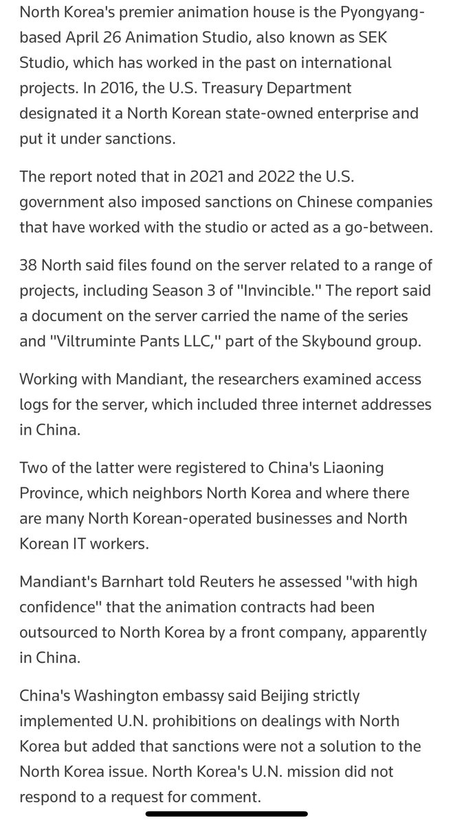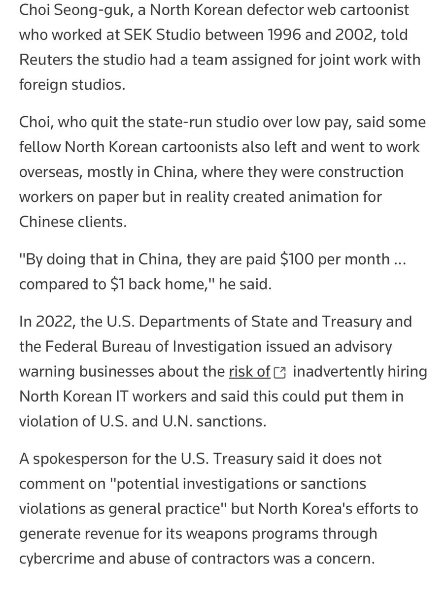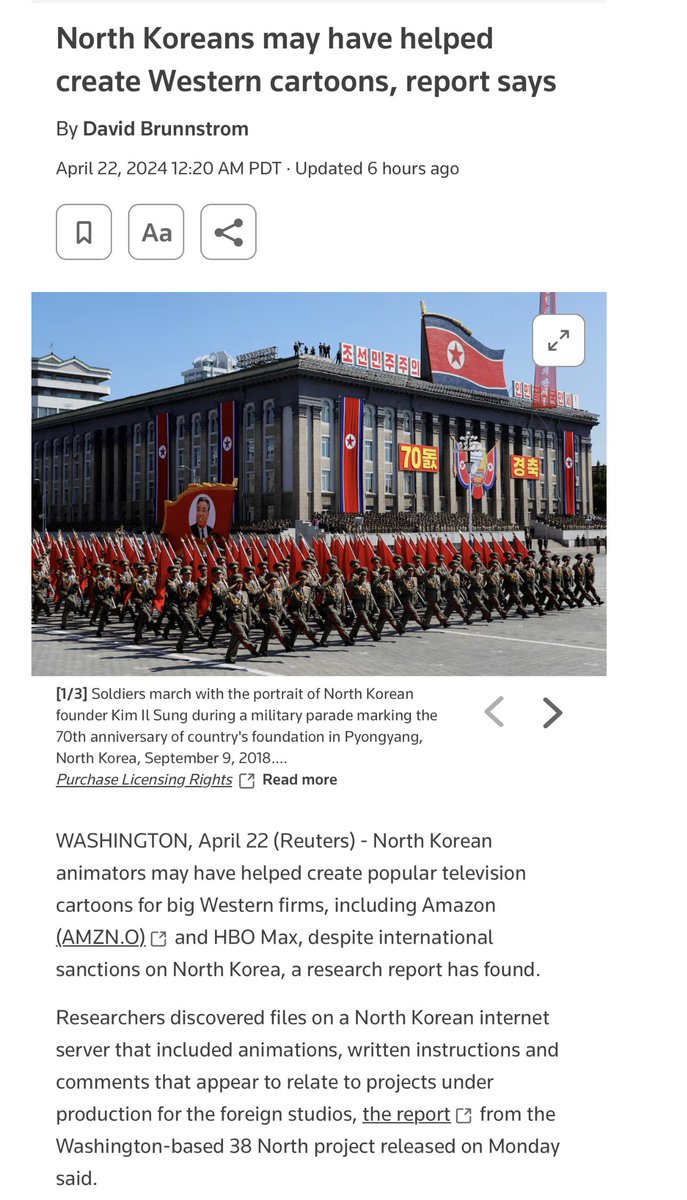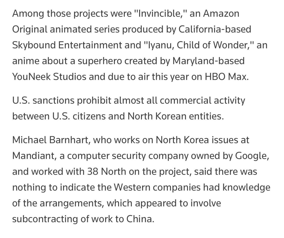 美国影视公司把动画制作外包给中国动画公司,中国动画公司再外包给朝鲜动画公司,皆大欢喜。 https://t.co/Tg9WnfLvVz