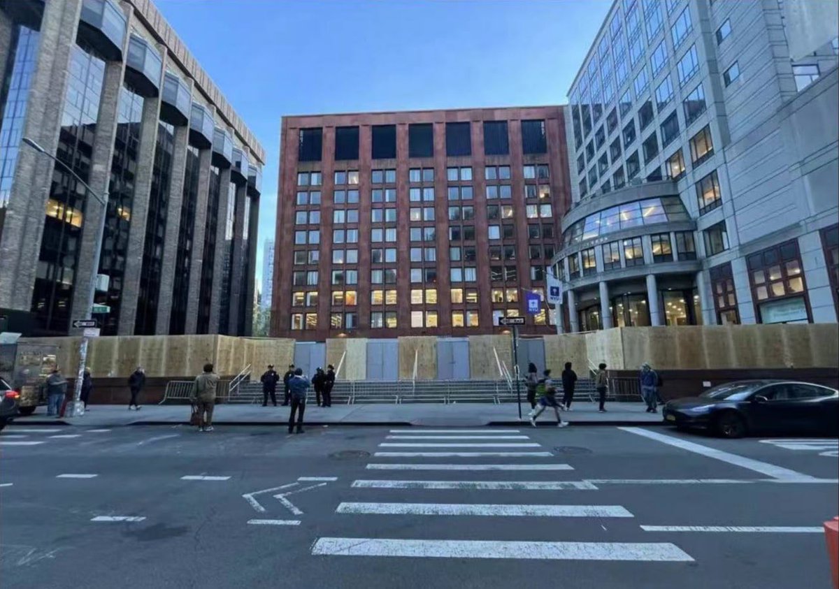 为了阻止学生示威,纽约大学迅速建墙把门口广场围起来。这个速度,川普看了羡慕不已。是不是向墙国学的? https://t.co/3ccWPZiWT6