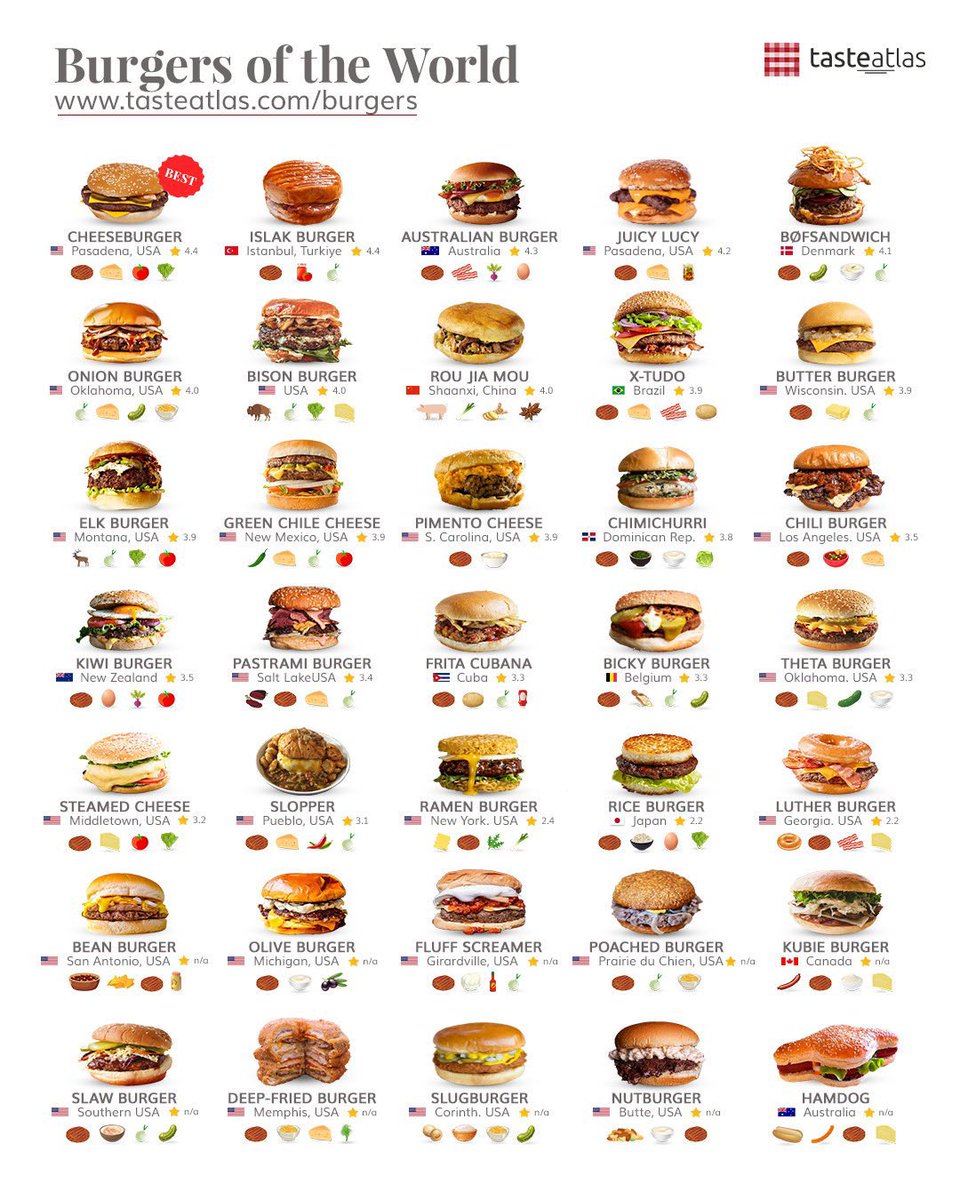 世界“汉堡包”类食物排名。排第一的是南加州奶酪汉堡。这回有肉夹馍,排在第8。 https://t.co/9tJQ0QL4gD