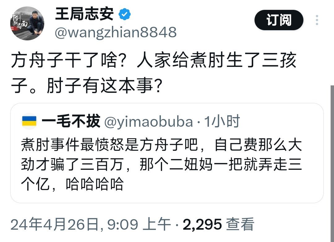 王志安觉得自己在北京诬告“安保基金诈骗”讨回300万捐款,又跑美国诬告想再得300万“投资收益”,虽然空手而回,也是为徐波立下汗马功劳,不亚于为徐波生了两个娃。至于用铊专家“一毛不拔”贝志城,也这么兴奋,为徐波生了几个娃? https://t.co/0jfpUIxqSI