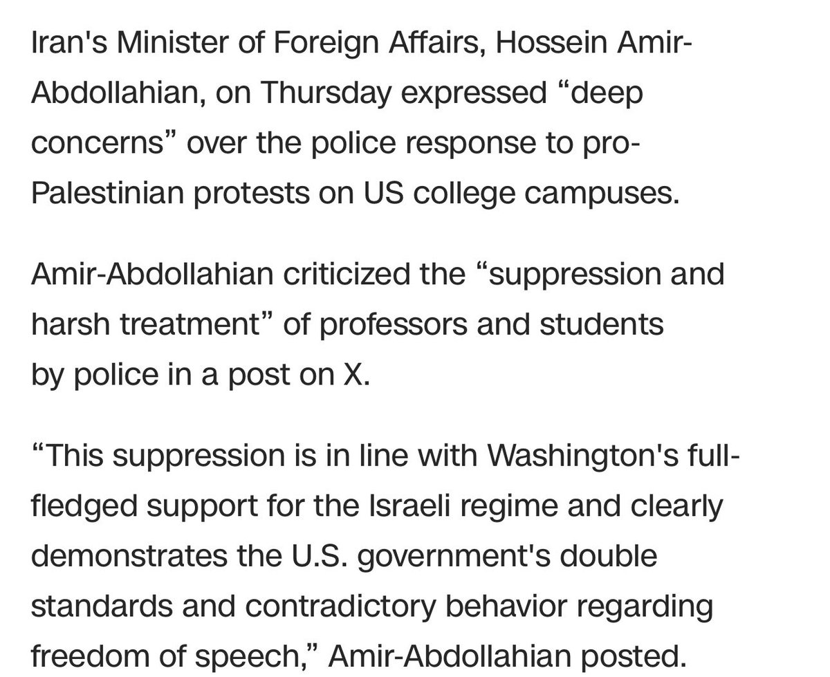 伊朗外交部长谴责美国政府镇压学生示威,在言论自由方面表现出双重标准。中国战狼要不要也跟着谴责?多好的机会啊,只要忘了自己镇压示威更严厉即可。 https://t.co/qOaGlaOyCh