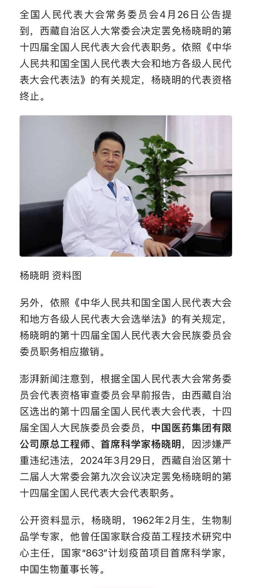 “中国新冠疫苗之父”、国药首席科学家杨晓明终于被抓了。什么时候抓“中国新冠疫苗之母”陈薇将军? https://t.co/qrPW3T9dBz