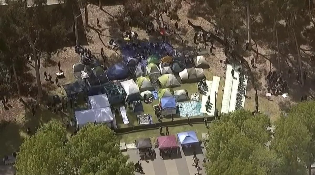 昨晚支持以色列的暴徒的袭击给了对UCLA示威营地清场的理由。据说今晚警察将要清场,校内几千人聚集,新搭了无数帐篷,等着被抓。UCLA校长下个月就换人了,给新校长留一个烂摊子? https://t.co/hn3fA1zH4X https://video.twimg.com/amplify_video/1785929583566749696/vid/avc1/720x1282/bHCw11t4EVfOrCn0.mp4?tag=14