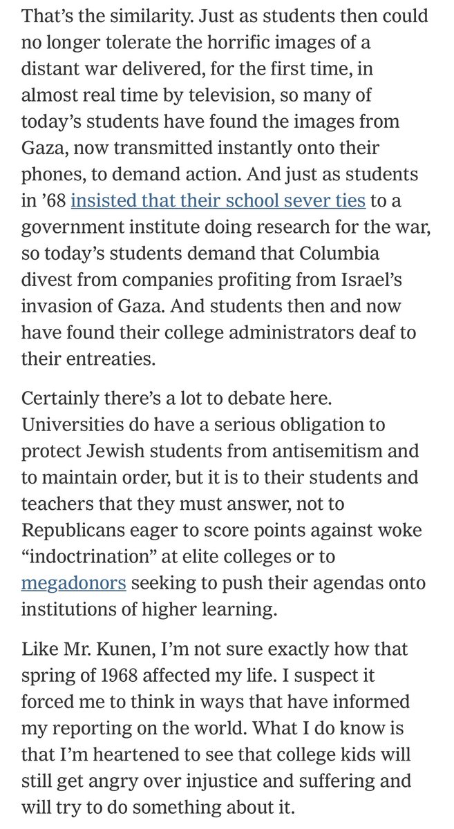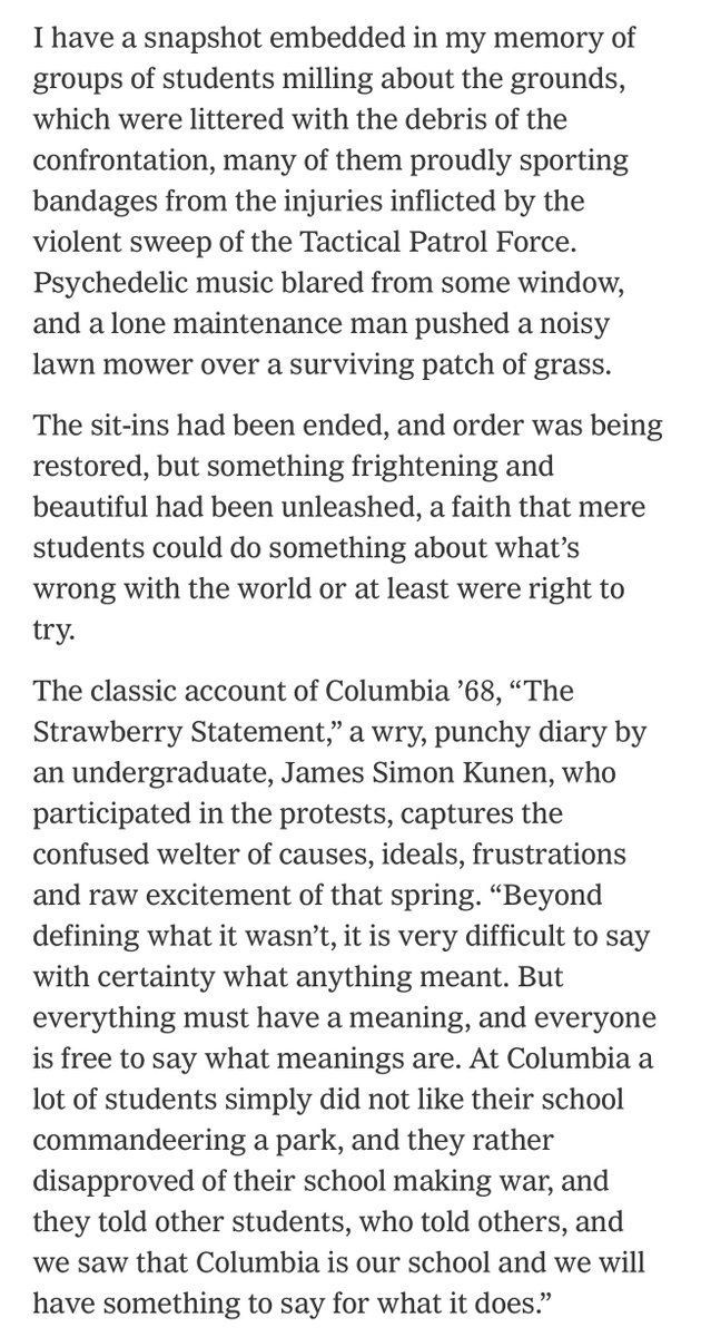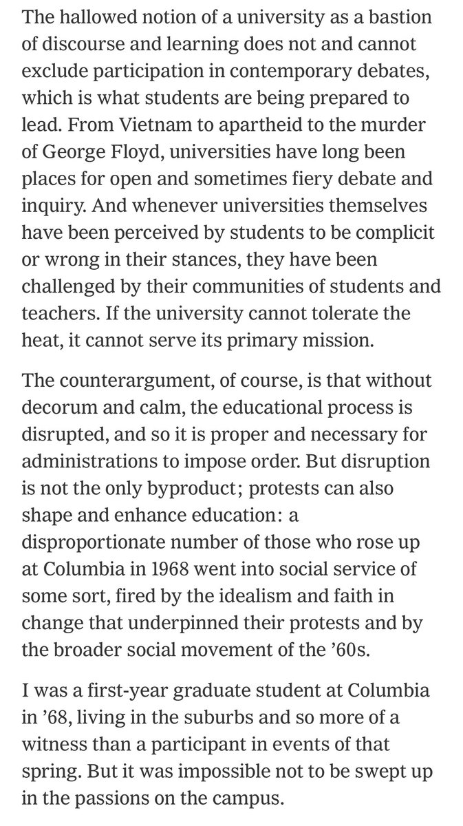 纽约时报的评论文章说《学生抗议是教育的必要部分》。很对。回想起来,我的本科教育对人生影响最大的就是1986年的校园民主运动、1987年抵制当局对学校的接管、1989年的六四。只是1989年之后中国校园政治抗议运动不再被容忍,所以中国大学生缺乏这种人生教育,只会想着赚钱,理想主义早已死了。 https://t.co/29pnob3331