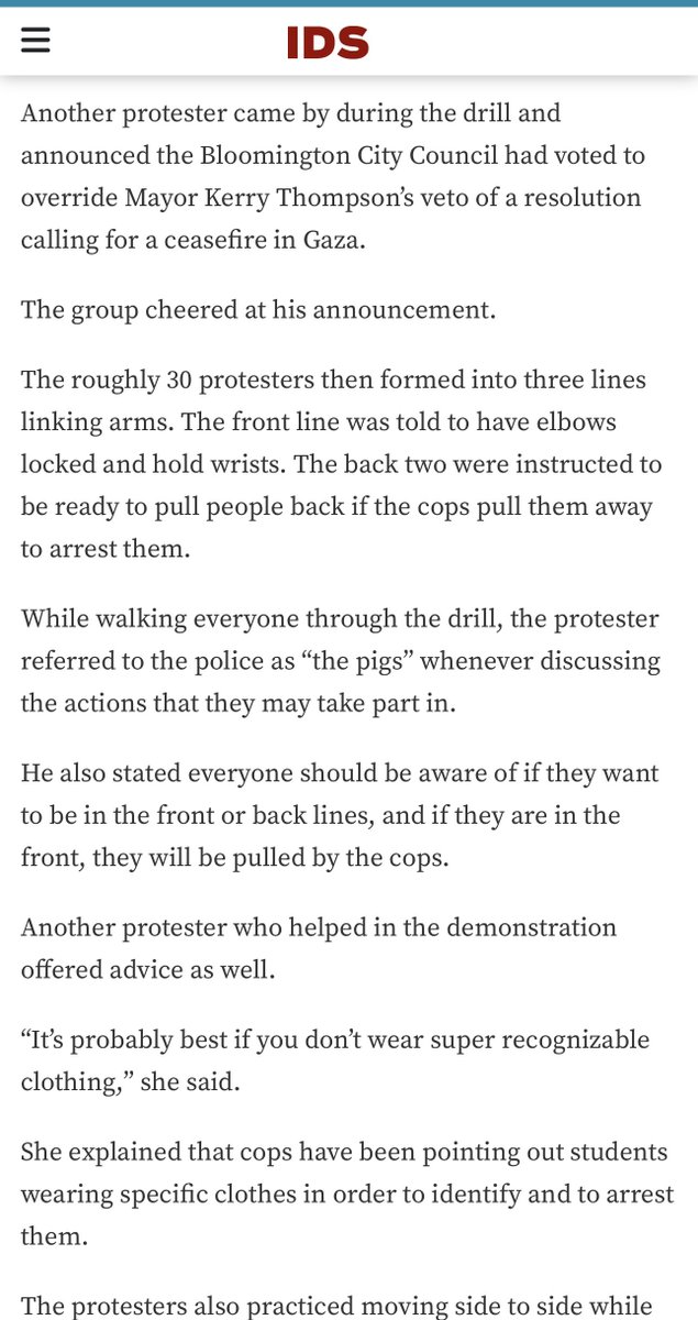 红州中蓝岛的日常生活:印第安那大学校园,州警每天进来拆除示威帐篷、抓捕抗议师生,警察走了学生再把帐篷搭起来,前赴后继。州警还在大楼楼顶安置狙击手(州政府承认了),随时准备开枪,真是厉害。印第安那大学原来多好的公立大学,近年来一步步下滑。保守州的公立大学最终都会不行的,与保守环境格格不入,遭政客和居民痛恨、打压。