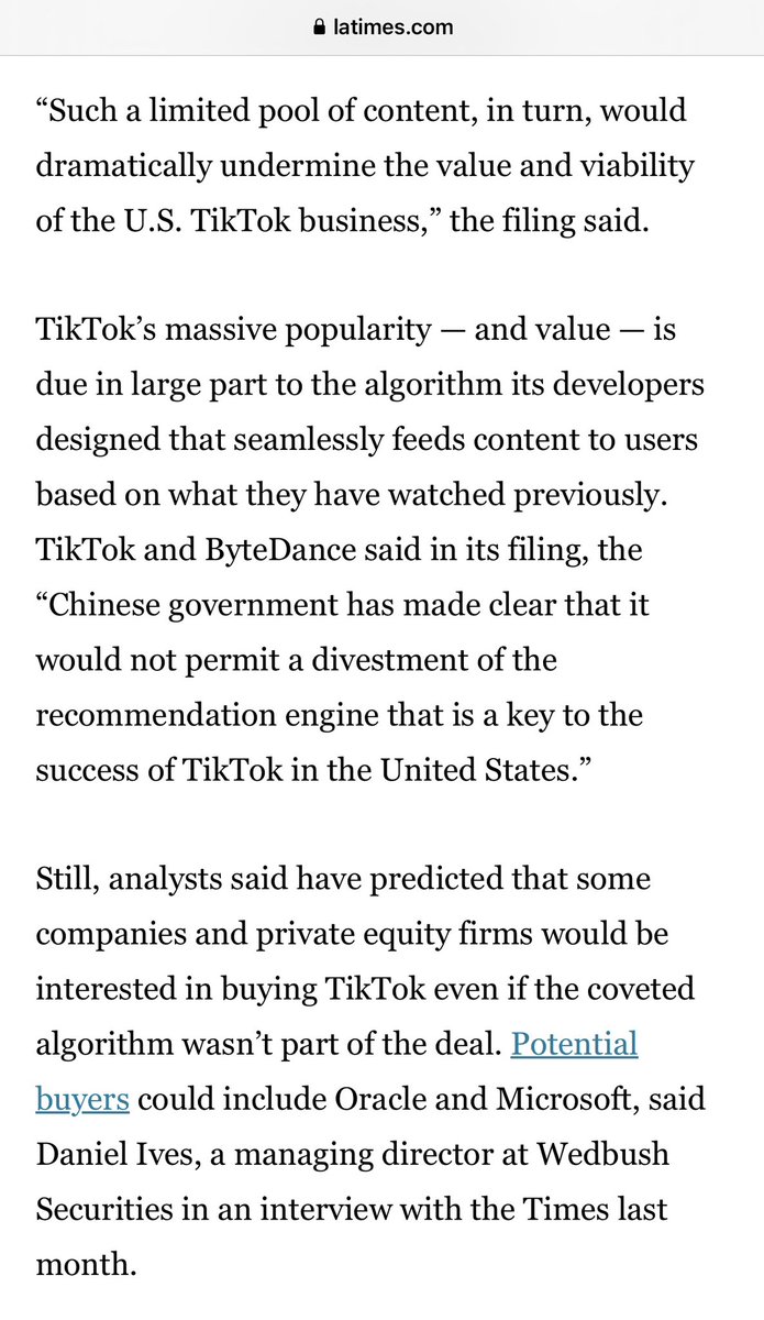 厉害,中国公司字节跳动果然起诉美国政府侵犯言论自由。诉状称,中国政府禁止TikTok出售,美国政府就不能要求TikTok出售。这是要求美国政府遵守中国法律?跟“中国首父”徐波反回来,他是要求中国法院遵守美国法律。 https://t.co/iICNMHUfXZ