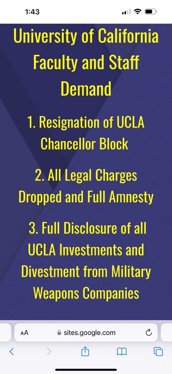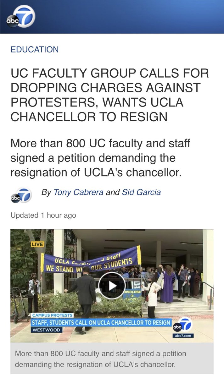 800多名加州大学教职员工联名要求UCLA校长立即辞职、赦免被捕学生、30天内公布投资情况、从武器制造和支持公司撤资。签名的很多是华裔教授。 https://t.co/8ii37vp2NP