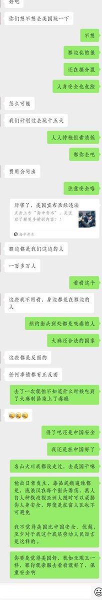 小粉红认为亲戚邀请她去美国玩是要骗她去水深火热的地方受苦受难,严词拒绝。 https://t.co/I7lzgDvE2e