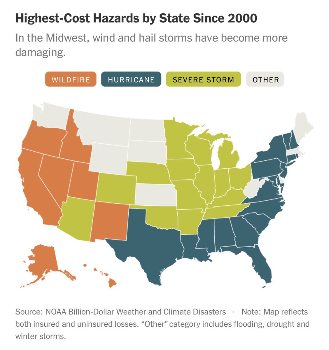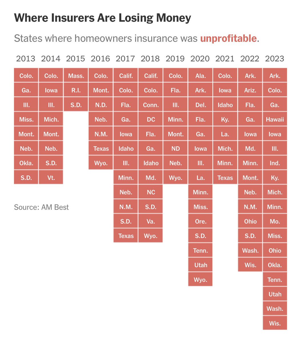 受气候变暖的影响,美国西部野火、中部风暴、东部及南方飓风灾害增多,多个州的房屋保险公司连年亏本,都不想干了,不只是加州和佛罗里达才如此。 https://t.co/fpC8RSJim7