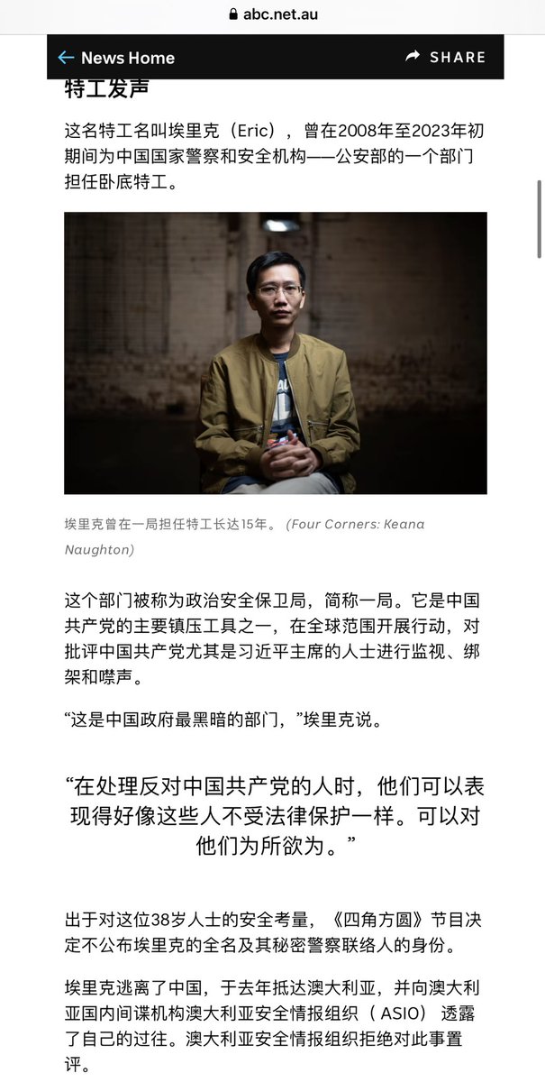 澳大利亚又惊现中国前特工,说是为了安全不透露全名,那为什么要露脸?上次那个假特工现在在干嘛? https://t.co/osnrpf8g51