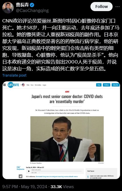 曹长青还在造谣、抹黑疫苗,有人猝死就都是疫苗的的副作用,一个肿瘤科医生就是疫苗专家,所以说,川粉、五毛是一家,都热衷反人类、反科学。 https://t.co/RbVBmPaav7