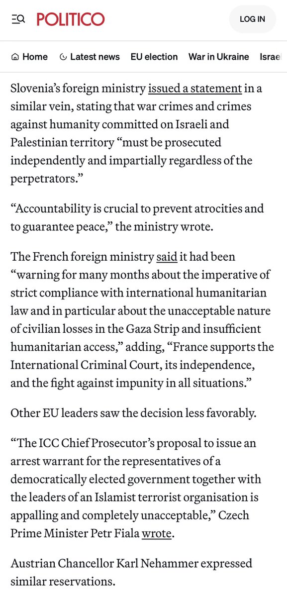 谁是真法治谁是假法治:欧盟、法国、比利时、斯洛文尼亚、南非、澳大利亚声明支持国际刑事法庭的独立性,尊重其对内塔尼亚胡的通缉。美国、英国、捷克抨击国际刑事法庭通缉内塔尼亚胡,美国众议院议长扬言要制裁国际刑事法庭。德国、奥地利声称尊重国际刑事法庭的独立性,但是反对通缉内塔尼亚胡。 https://t.co/i7OrKW7RJF