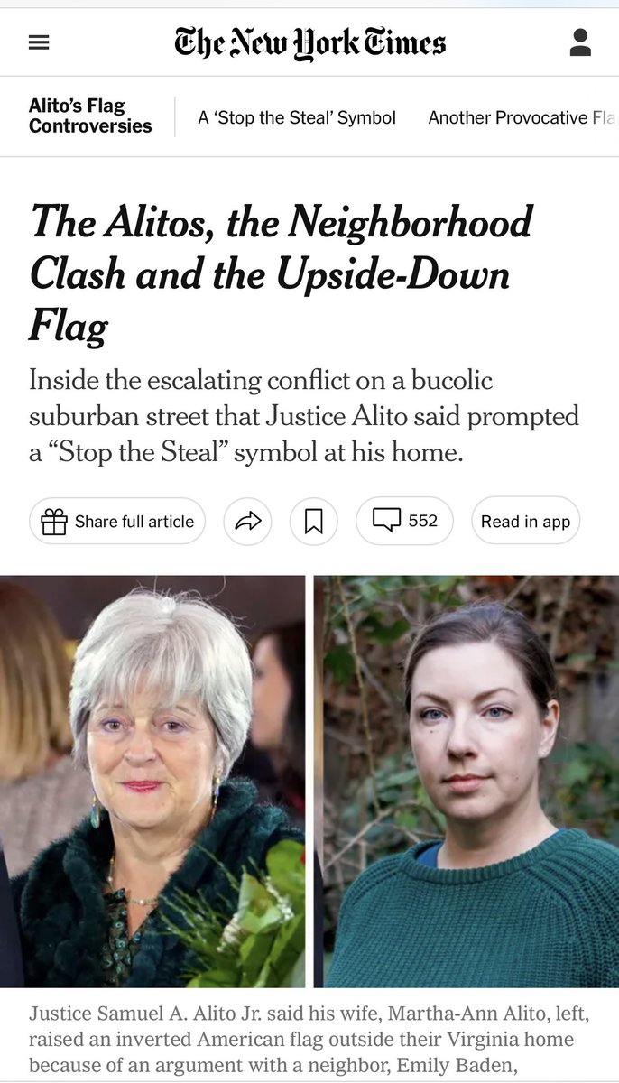 阿立托大法官说他妻子与反对川普的自由派邻居吵架,才倒挂国旗(川粉用于表示“拜登窃取大选”)与邻居叫板。但通讯记录显示,是在倒挂国旗之后,两人才吵架。这些最高法院保守派大法官都是些骗子、性侵者、性骚扰者,美国的悲剧所在。 https://t.co/3MzQb1I6rc
