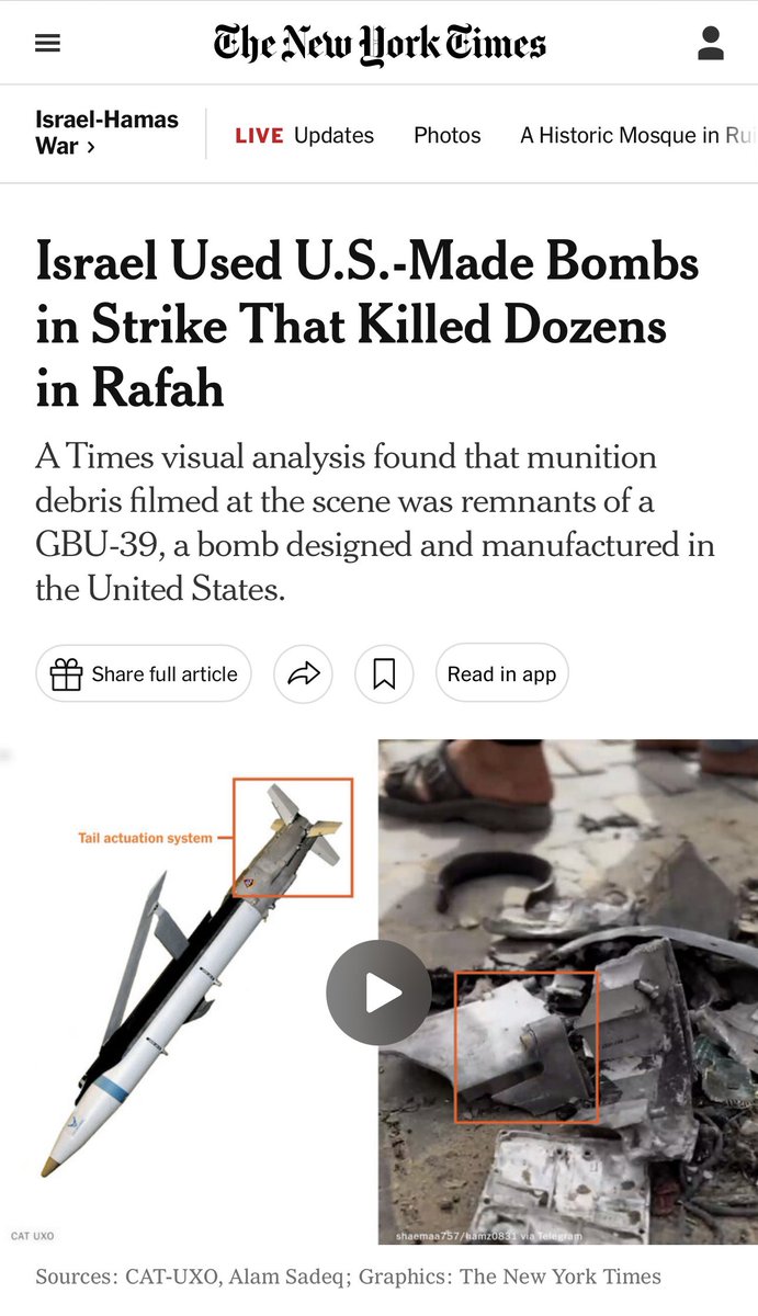 以色列轰炸拉法难民营用的是美国提供的“精准”炸弹,精准地轰炸根据以色列要求去“安全地带”避难的难民。现在以色列说,战争至少要持续到今年年底,也就是美国大选之前不会停火,内塔尼亚胡要帮川普一把。 https://t.co/IT9GTfwTo3