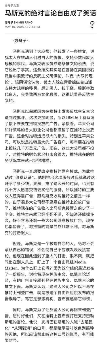 《马斯克的绝对言论自由成了笑话》图片版 https://t.co/taGhq2Dbq7