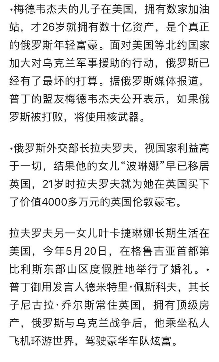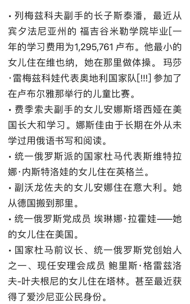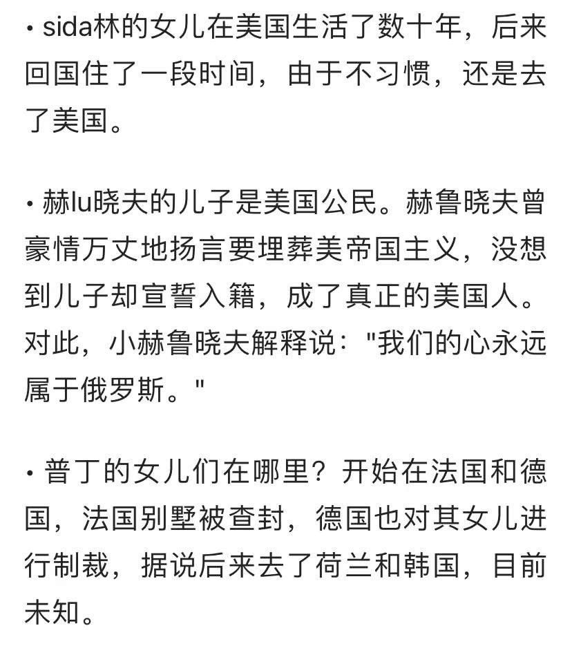 这个名单是真的。对斯大林女儿的介绍不准确,她是在1967年叛逃美国,之后加入美国国籍。斯大林的后人都是美国人。普京、梅德韦杰夫、拉夫罗夫等俄罗斯高官的子女也都在西方国家生活。所以我从不担心他们真会打核战争、第三次世界大战,都是装给国内愚民看的。中国也一样,欧美是中国高官后代的归宿。 https://t.co/KFYAcOqZ1W