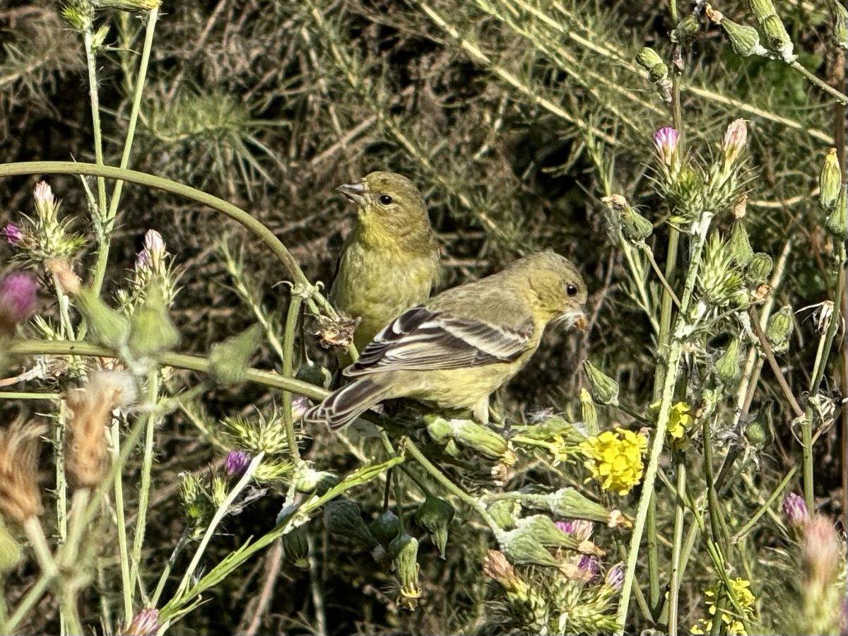 两只忙着吃种子的暗背金翅雀(less gold finch)。 https://t.co/4pfui0qZ5X