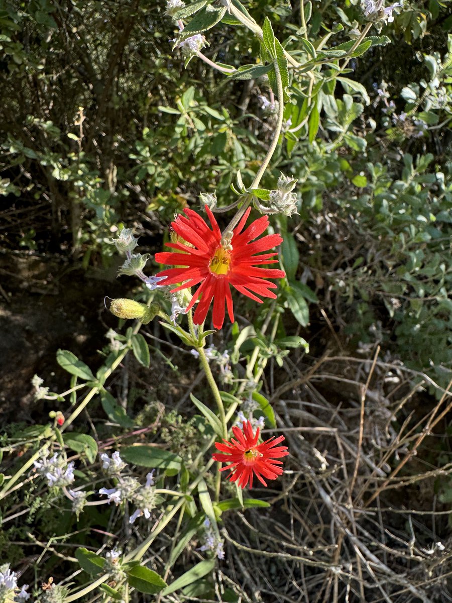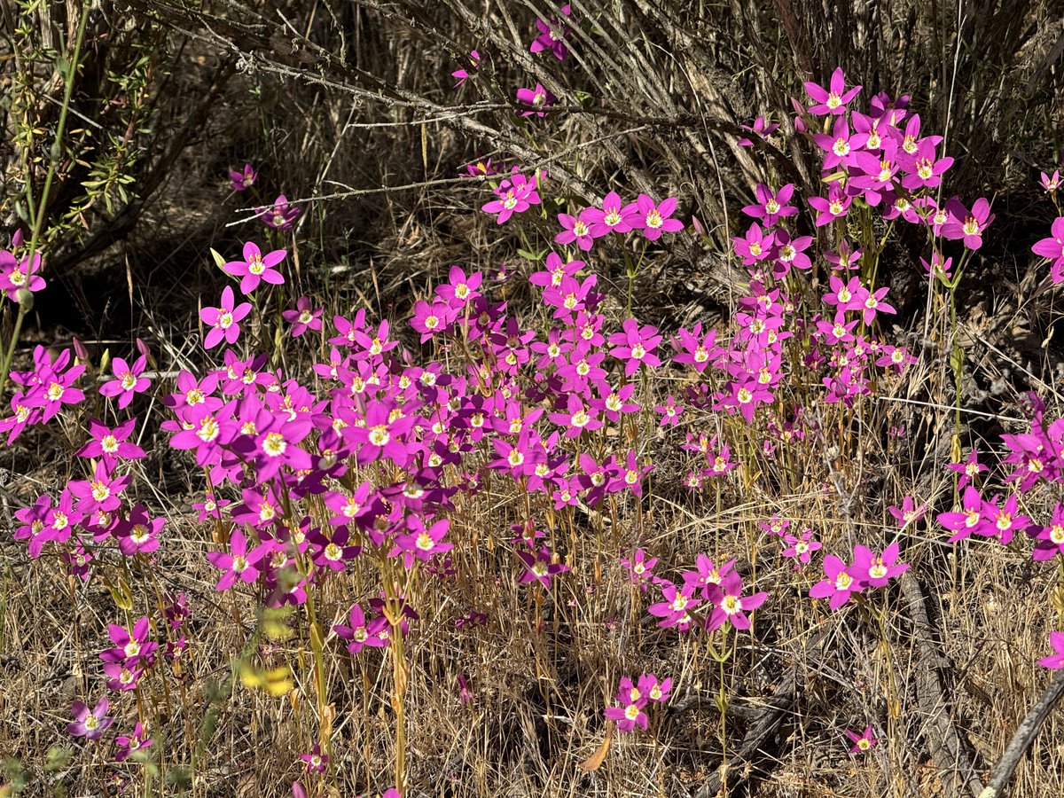 今日所见野花:粉叶仙女杯(chalk dudleya)、猩红蝇子草(scarlet catchfly)、加州百金花(California centaury)、查帕拉尔灌木锦葵(chaparral bush mallow)。 https://t.co/dWksOcb9cJ