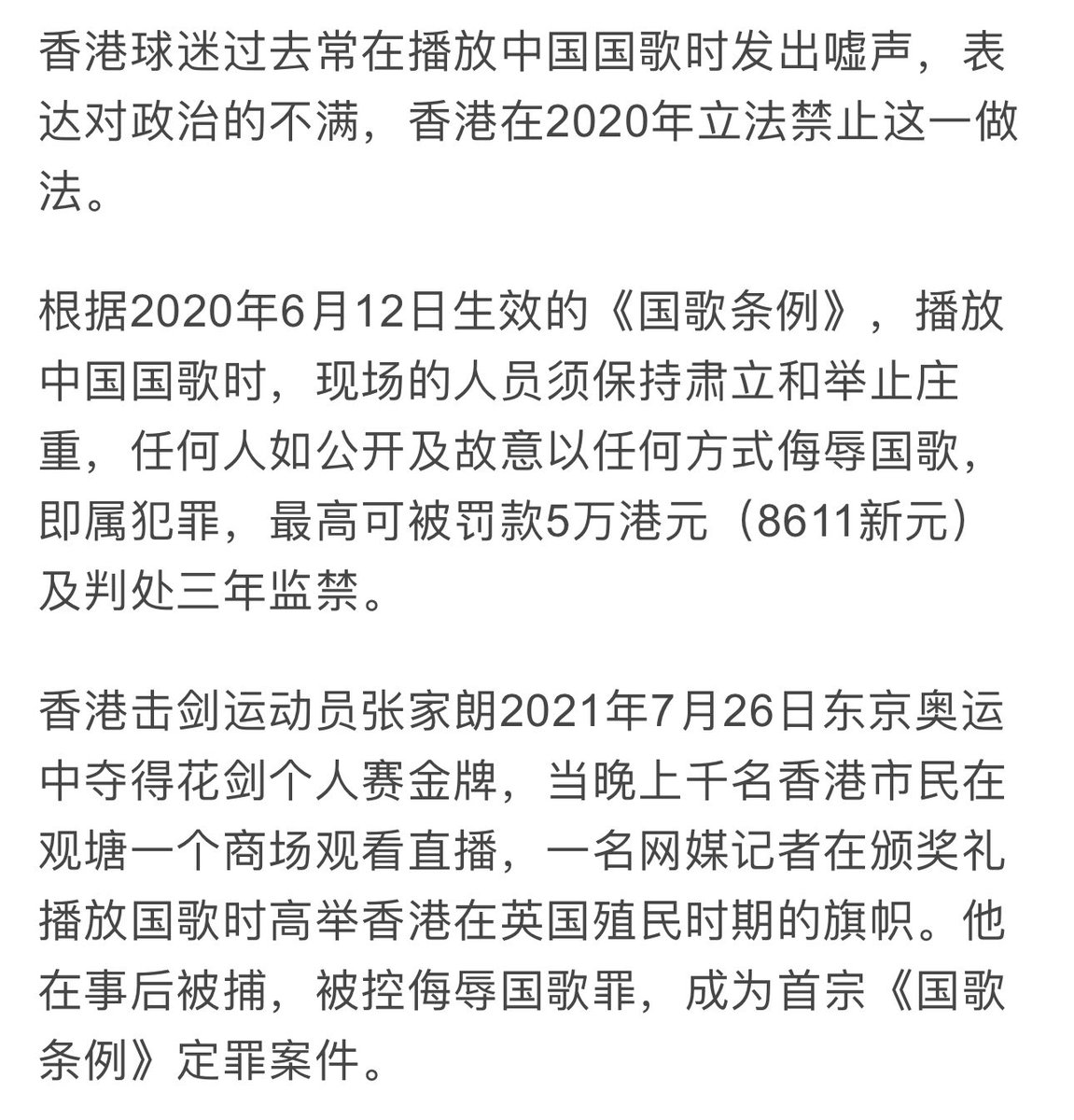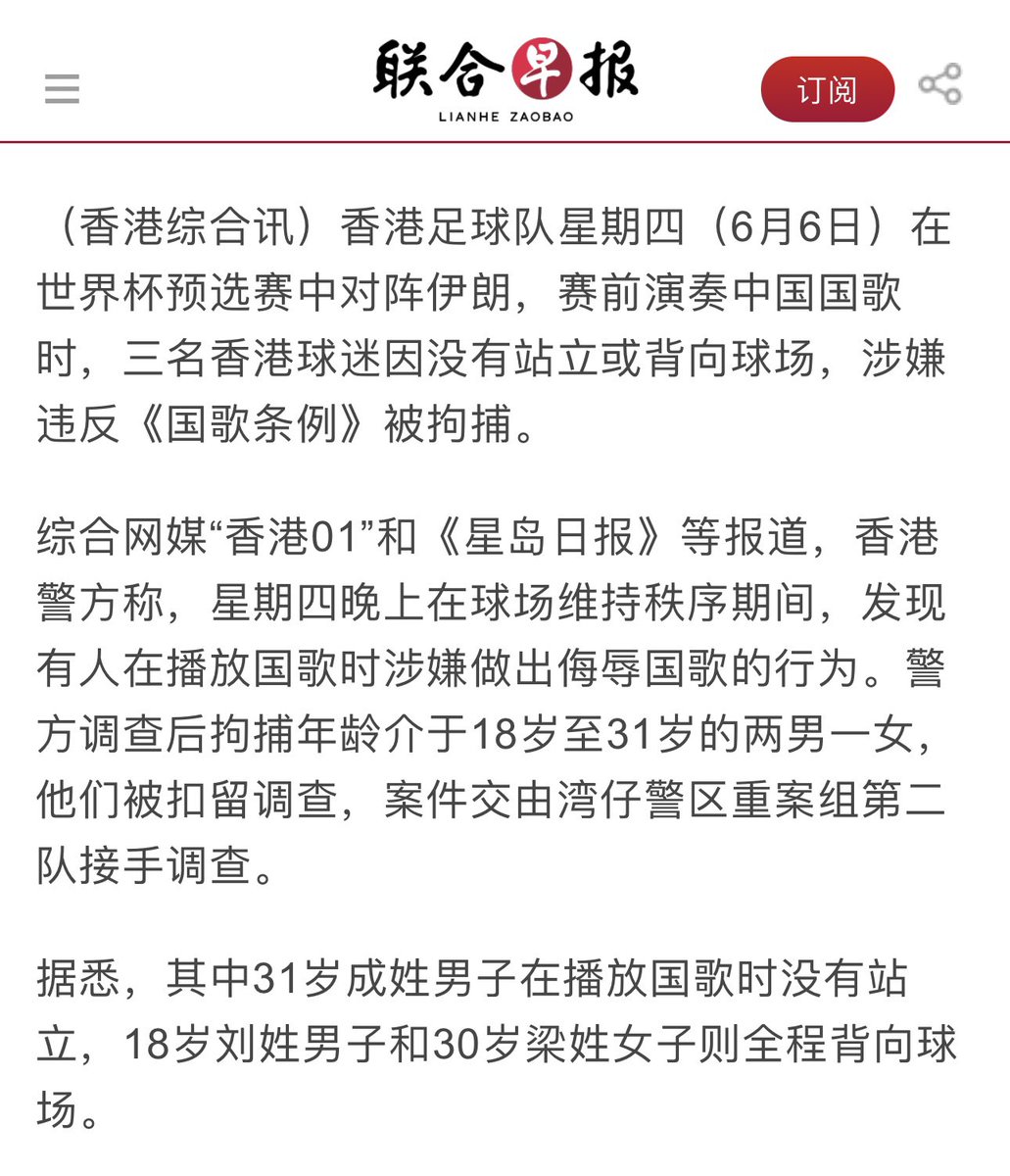 香港竟然有侮辱国歌罪,演奏国歌时没起立要被抓去坐牢。看来还有国歌警察在监视。 https://t.co/jLcP7sNcqN