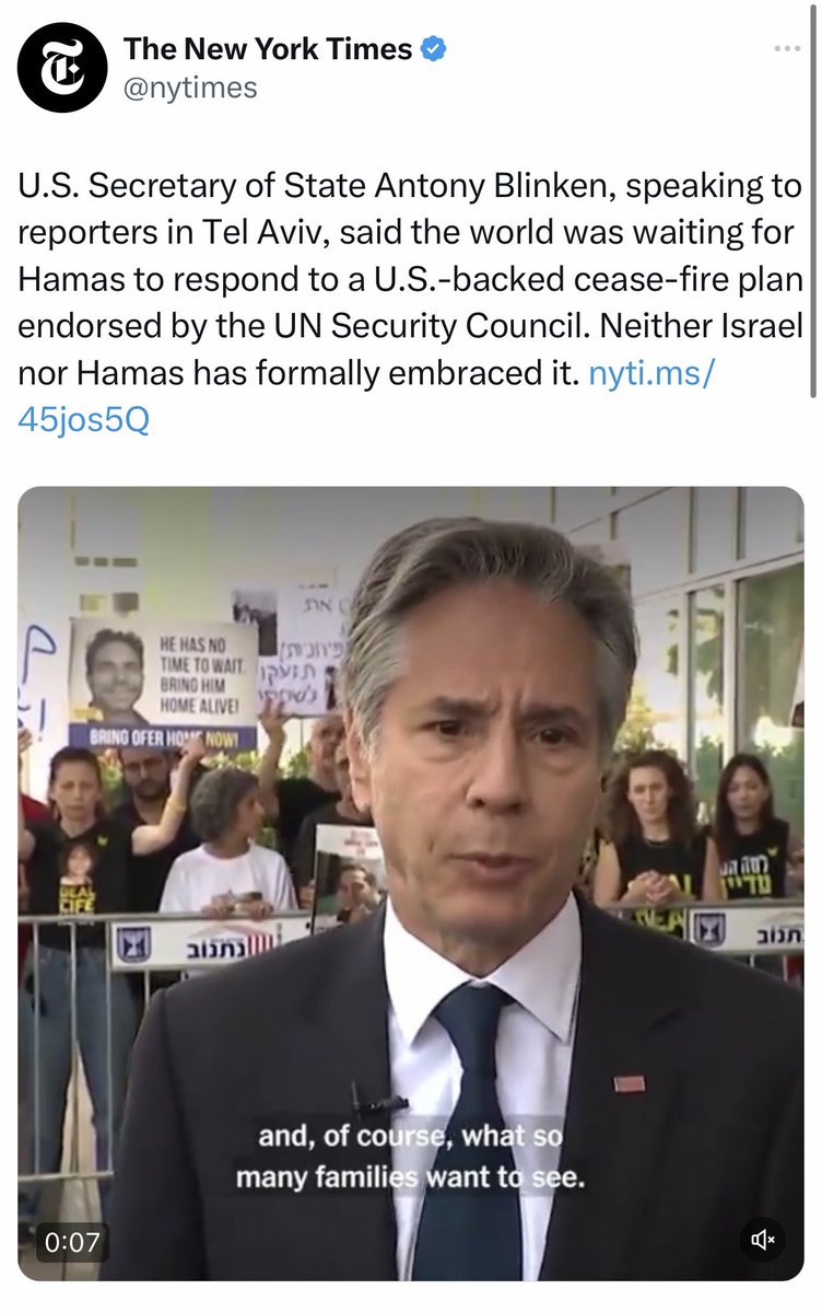 布林肯说全世界都在等着哈马斯接受停火协议。但是全世界都在等着以色列接受停火协议他就不说了。 https://t.co/31k6ka1MZP