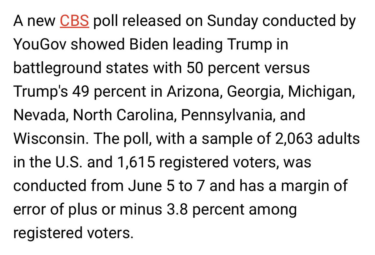 川普被定罪后,拜登在战场州转而微弱领先川普。这是意料中的,但能持续多久? https://t.co/XxvLQoZGhz