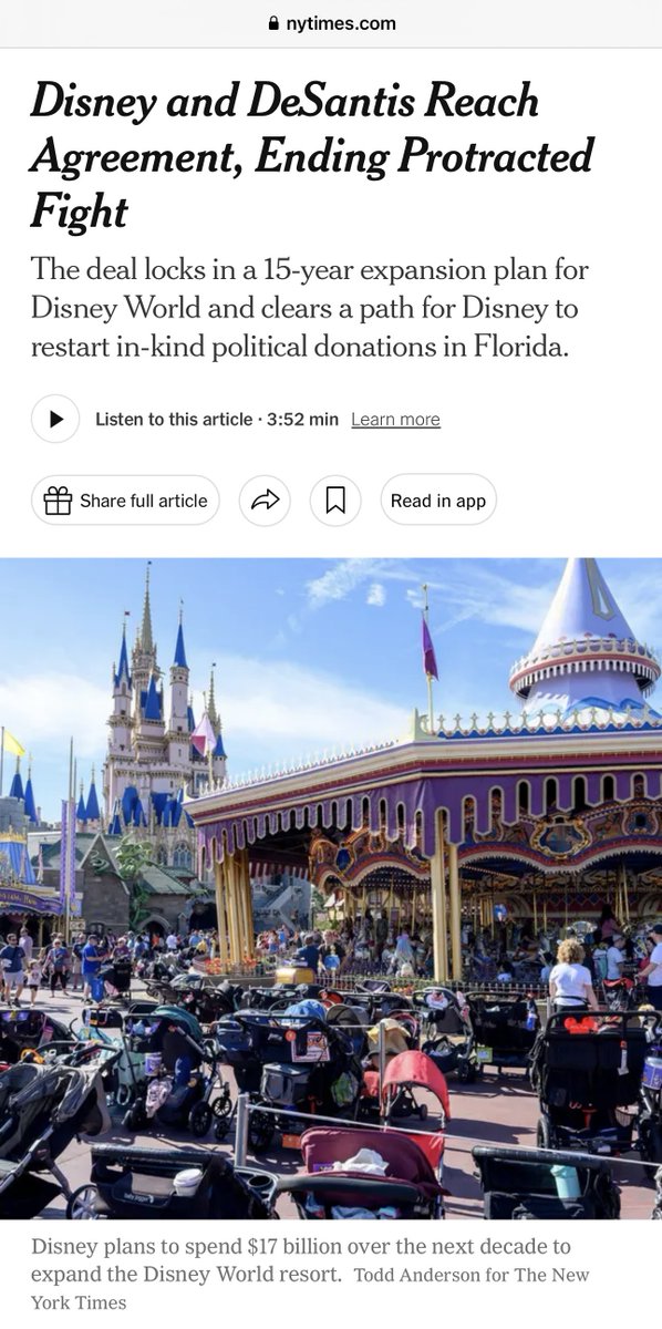佛州纳粹州长与迪斯尼的战争结束,德桑迪斯向迪斯尼妥协,迪斯尼至少在未来15年可以自己发展。德桑迪斯当初演这出戏本来就是为了竞选总统取悦川粉,现在当总统没戏了,就得考虑本州发展,得罪本州最大雇主有啥好的? https://t.co/GNOxcMvCNq