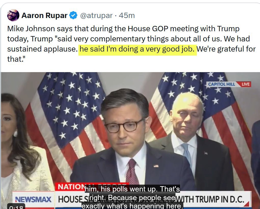 共和党政客见到川普如同见到伟大领袖,被他表扬了一句受宠若惊,出来赶快传达最高指示。 https://t.co/ZbfHYzoYyM